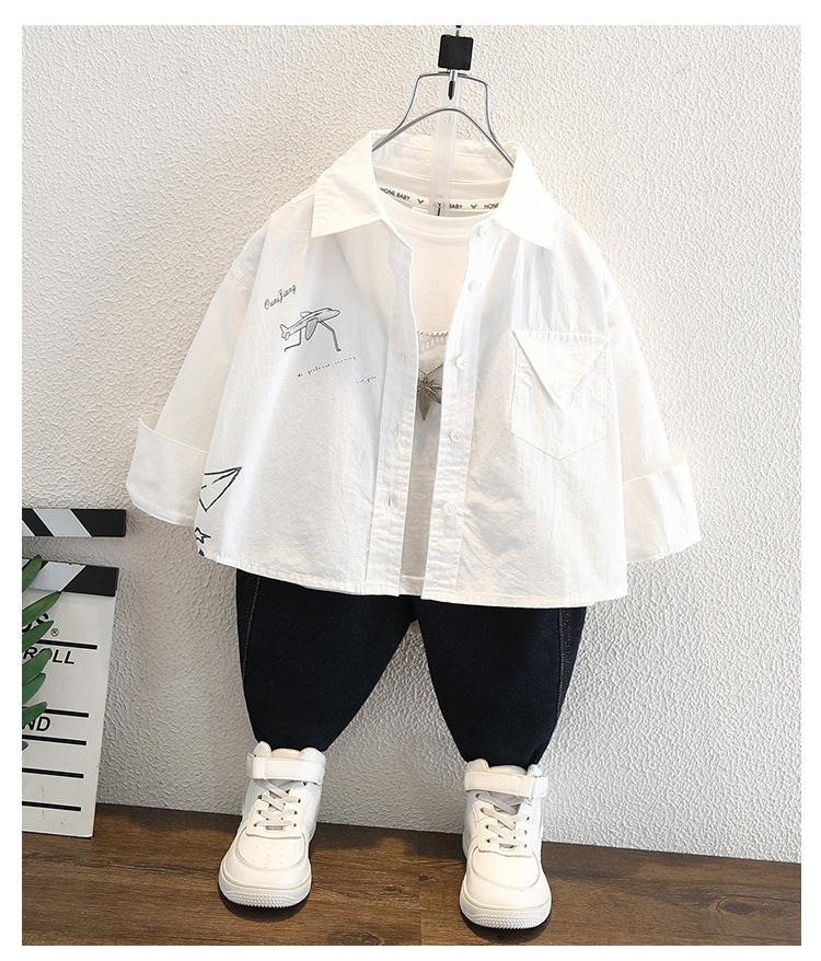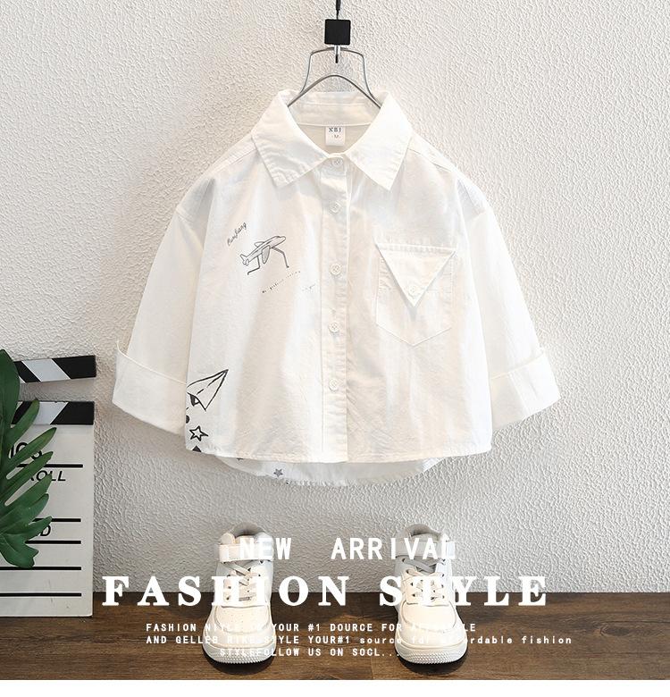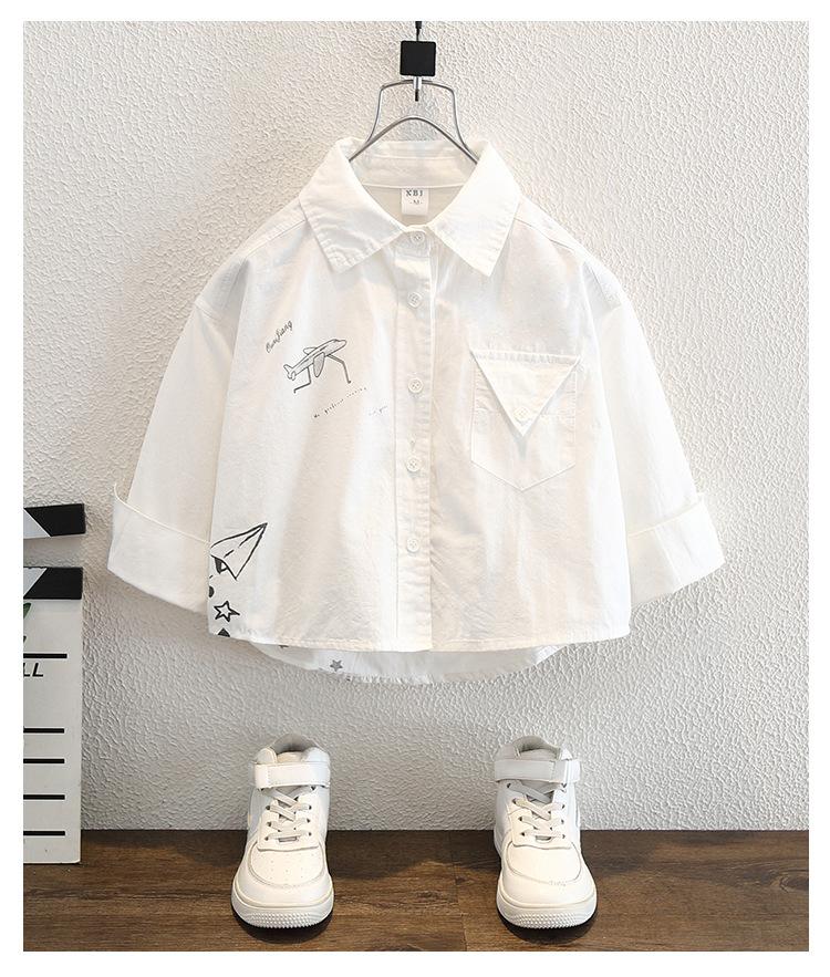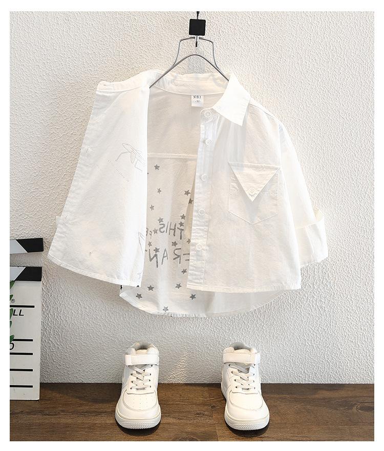 Camisa de Otoño para Niño Estrella Blanca 2025 Otoño y Primavera Estilo Coreano Camisa Casual para Niños Top de Moda para Bebé