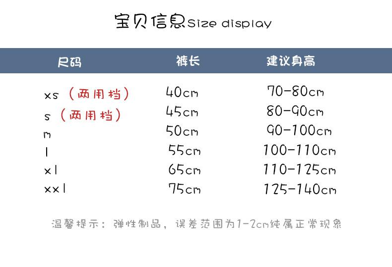 XS: height 70-80cm/pants length 40cm, S size: height 80-90cm/pants length 45cm, M size: height 90-100cm/pants ...