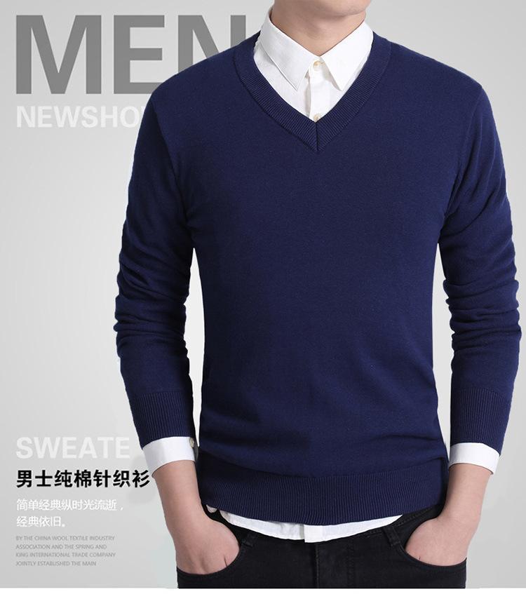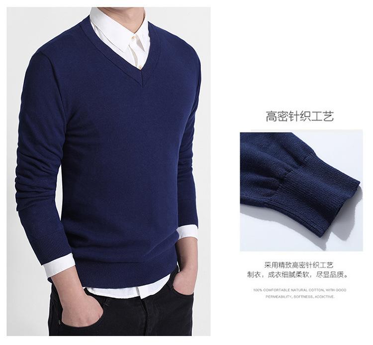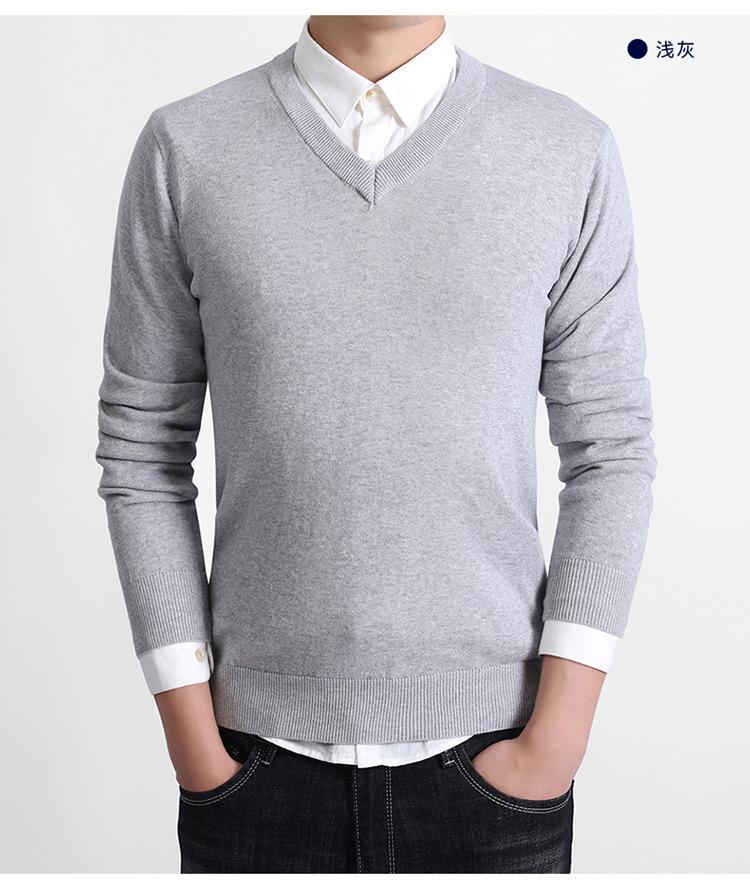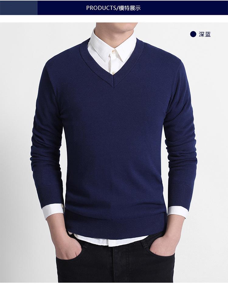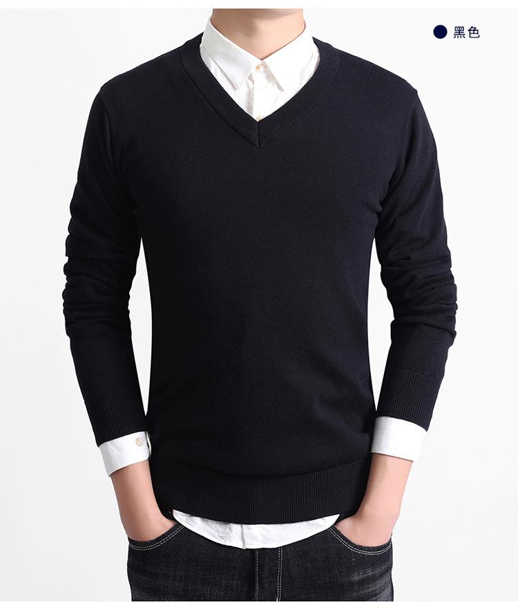 Suéter de Punto de Cuello en V para Hombre de Negocios Europeo y Americano Nuevo de Otoño/Invierno 2025 Comercio Exterior Transfronterizo Suéter Casual de Manga Larga de Color Sólido para Hombre