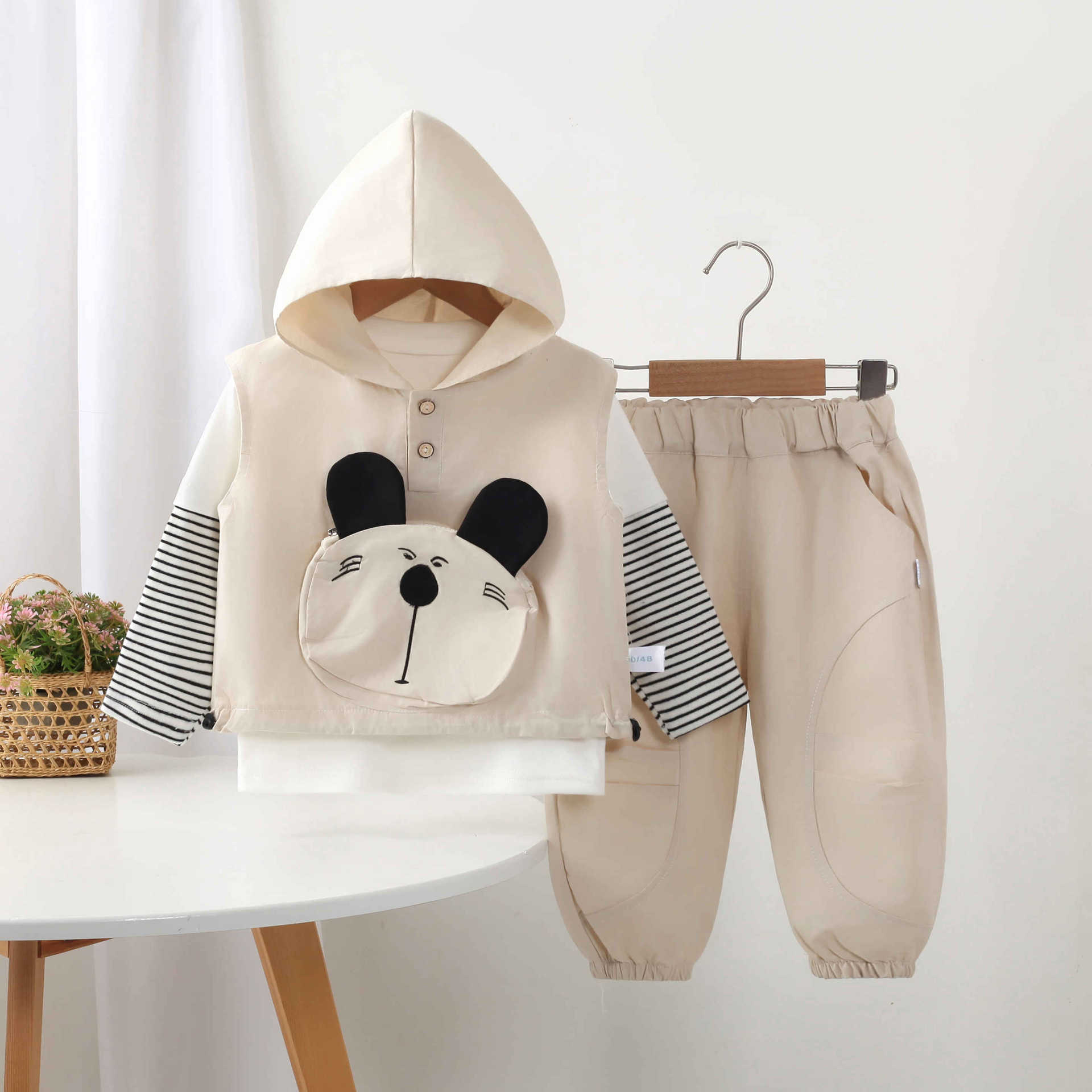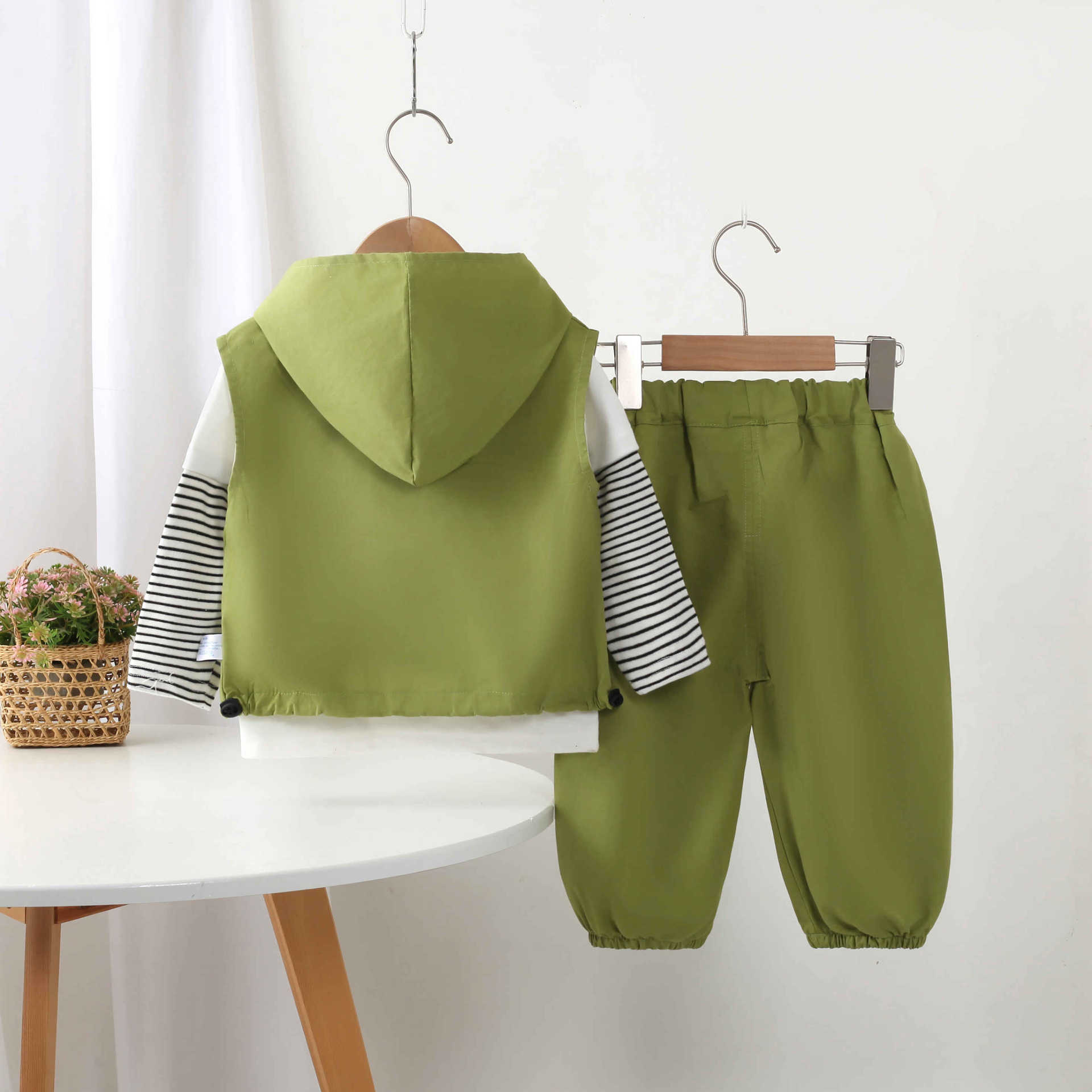 Ropa de Otoño para Bebé Chaleco Versátil Rayado para Primavera y Otoño Ropa Infantil Guapa Set para Niño de Moda de Tres Piezas para Primavera y Otoño