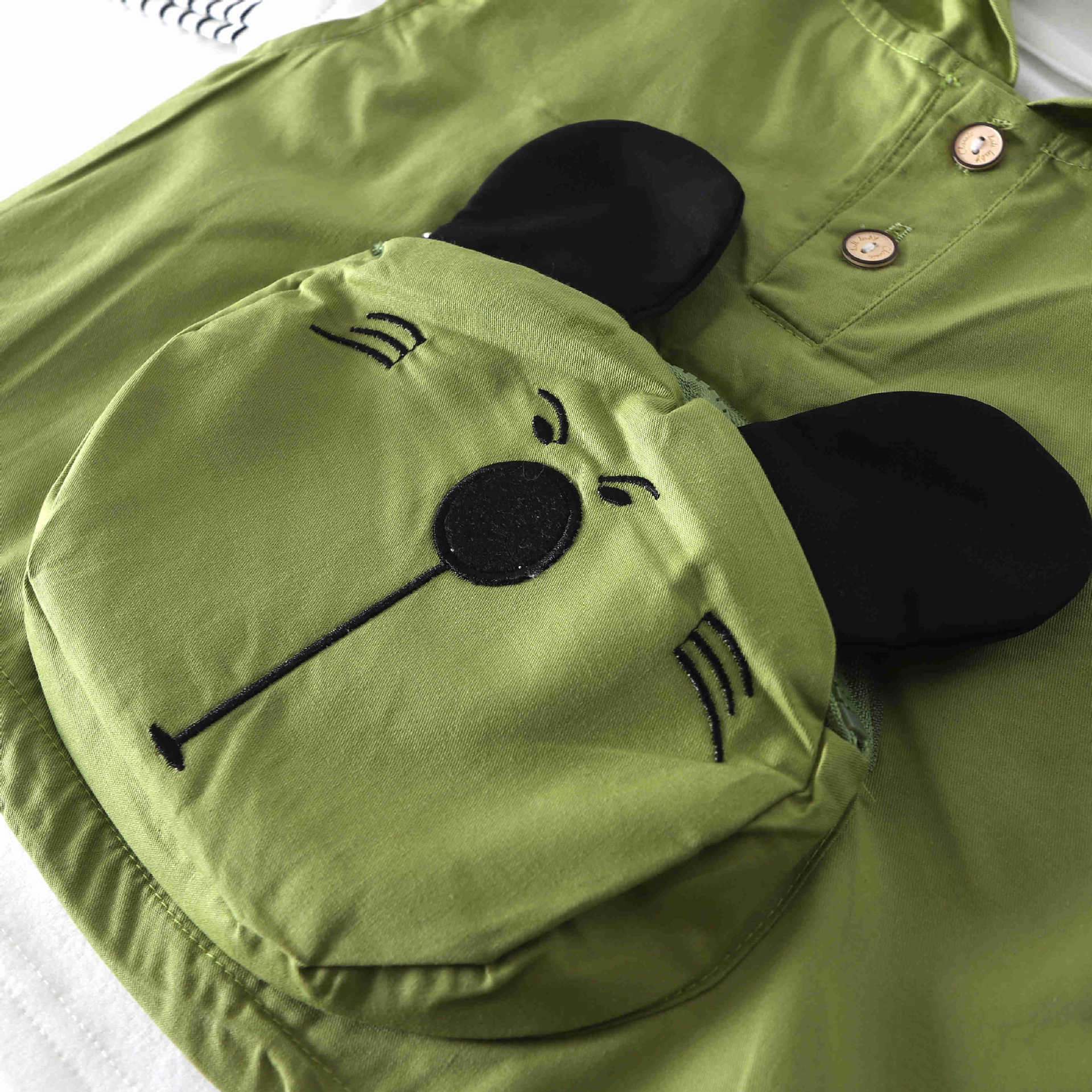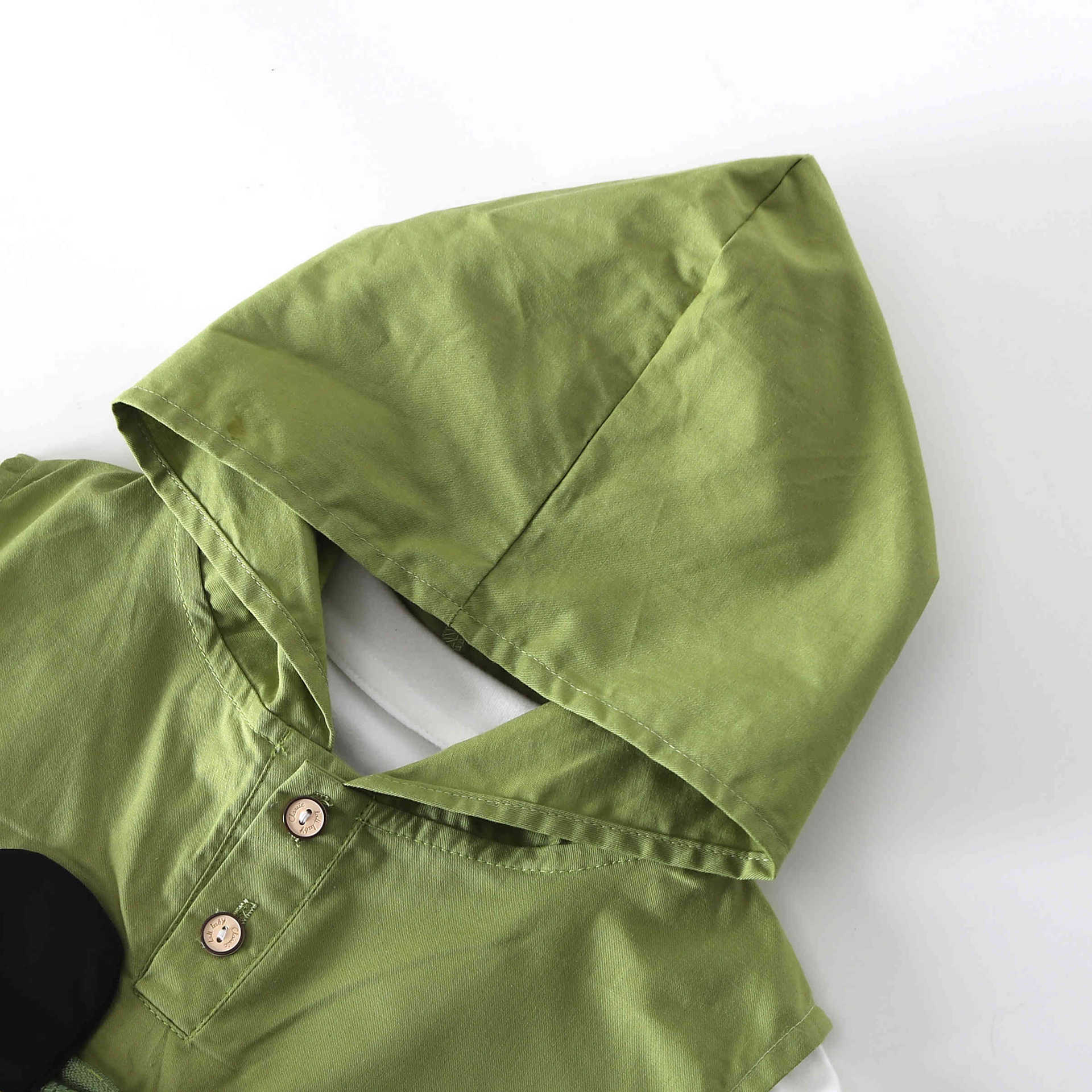 Green-A-3【Hooded Vest Cuffed Pants Three-Piece Set】
