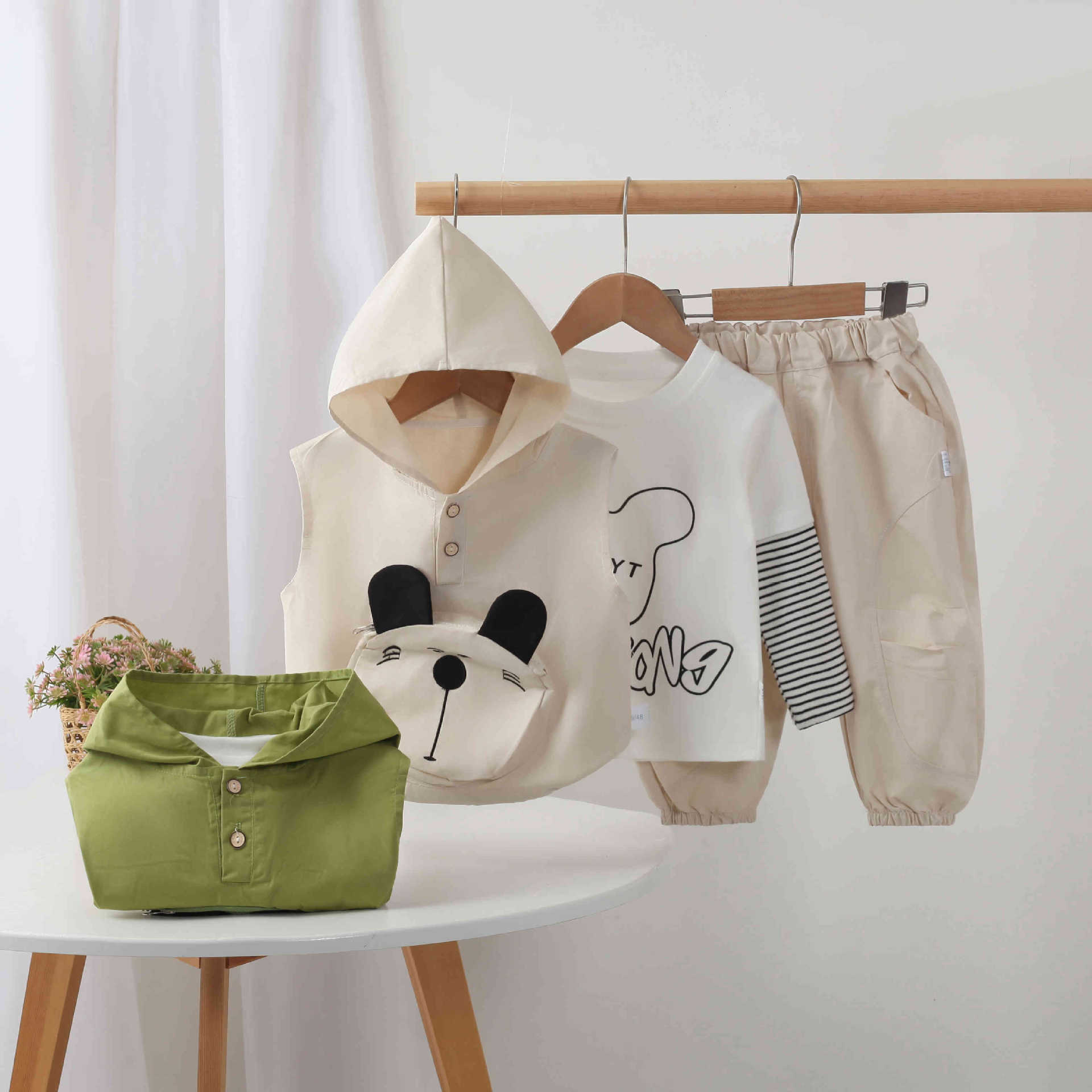 Beige-A-3【Hooded Vest Tapered Pants Three-Piece Set】, Green-A-3【Hooded Vest Cuffed Pants Three-Piece Set】