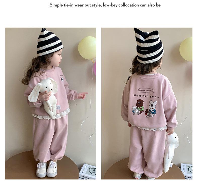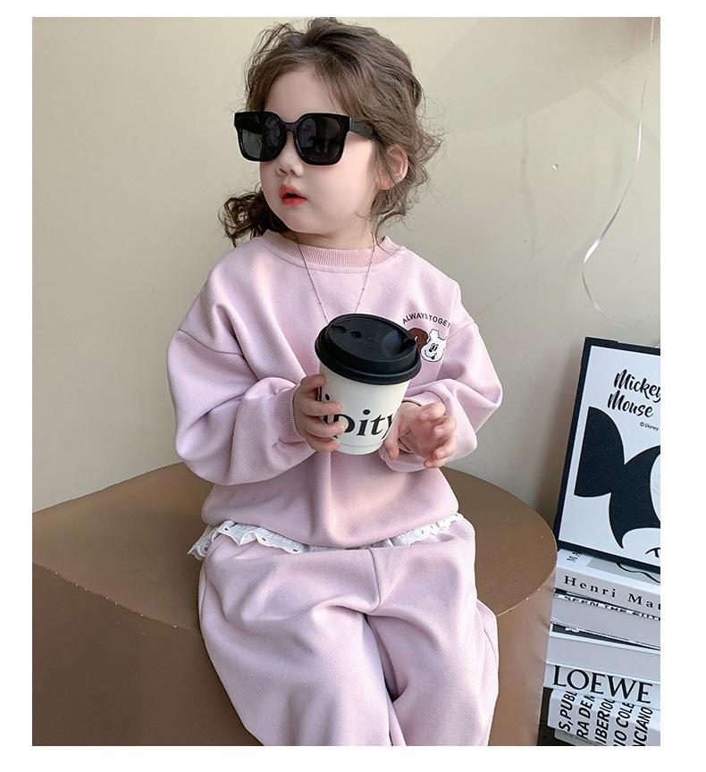 Conjunto de Sudadera para Niñas Otoño 2025 Nuevo Ropa de Otoño Infantil Elegante y a la Moda Bebé Niña Estampado en la Espalda Conjunto de Dos Piezas