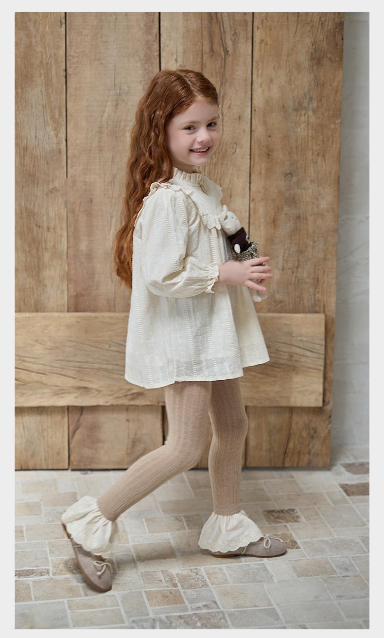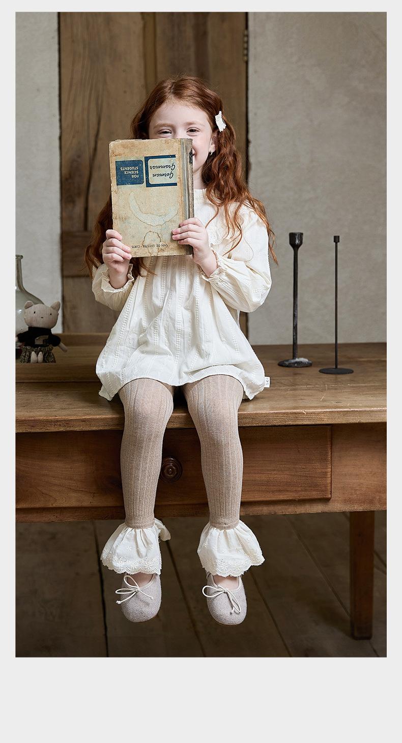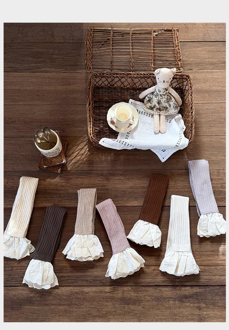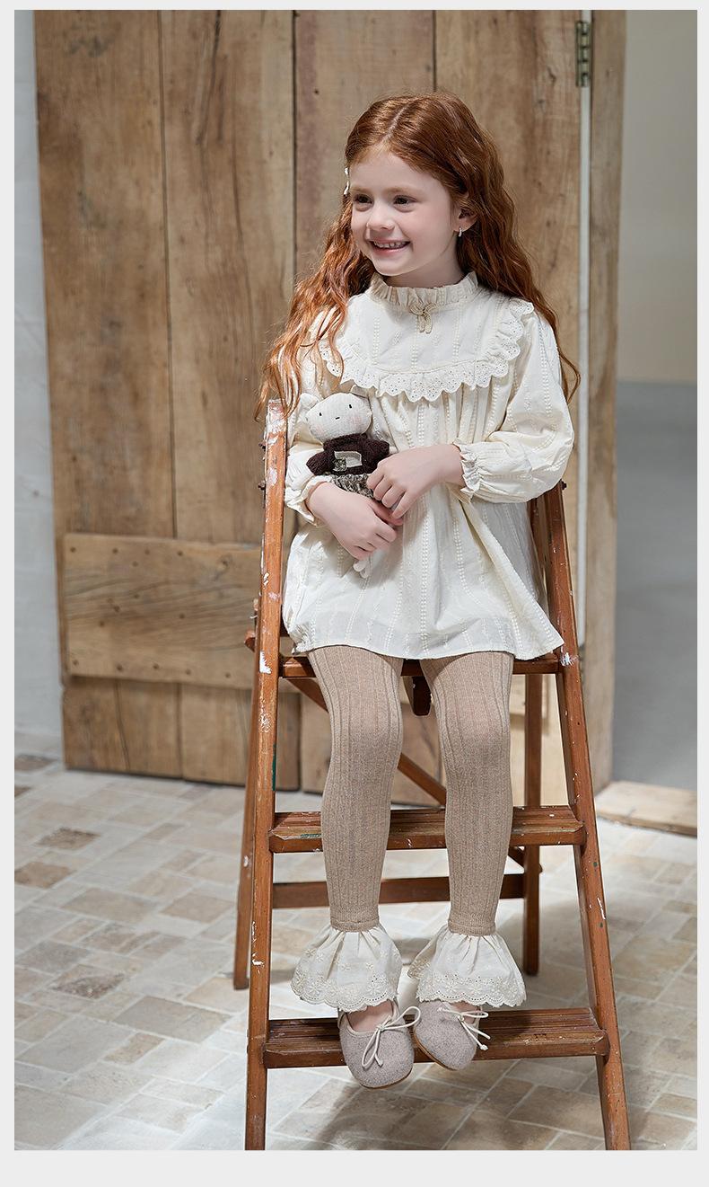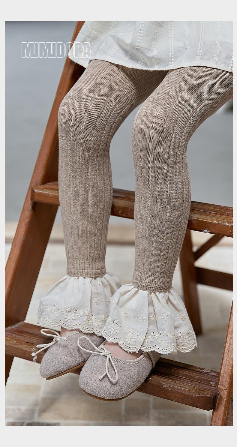 JF375 Pantalones Nueve Puntos para Niñas Estilo Nuevo de Otoño Leggings de Encaje a la Moda para Bebé Calcetines Bottom para Niños Pantalones de Algodón Peinado