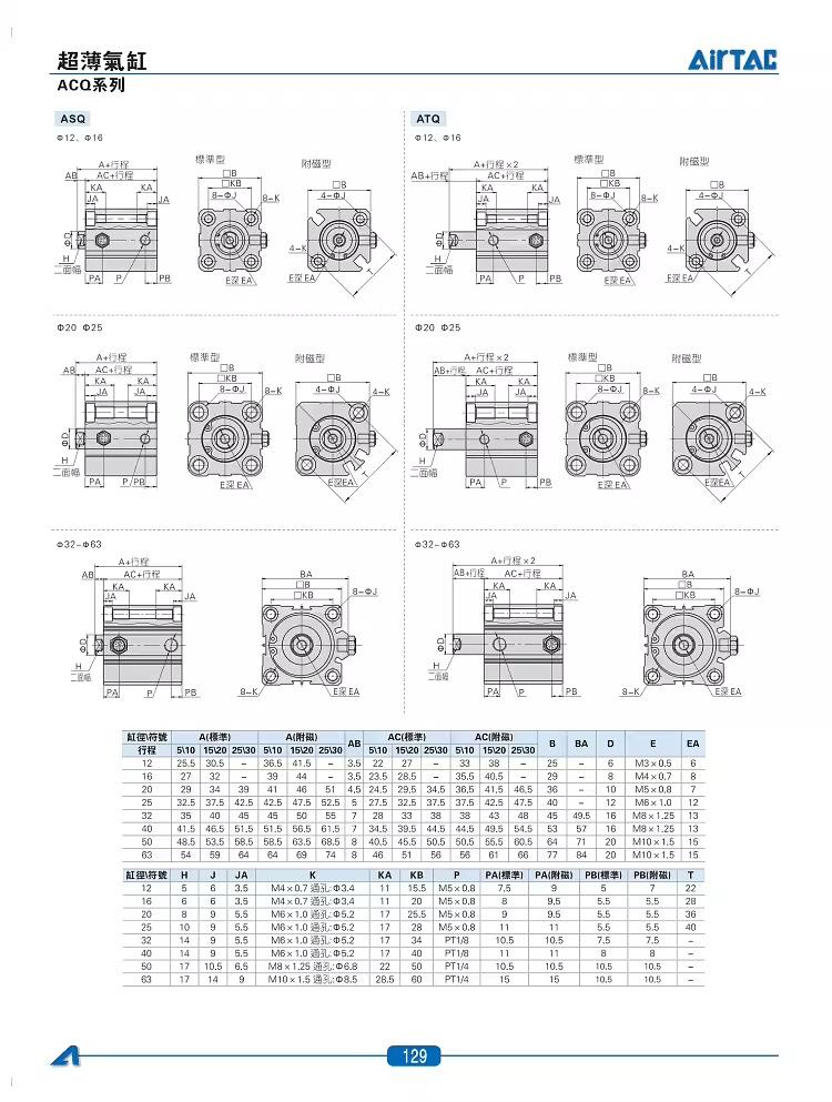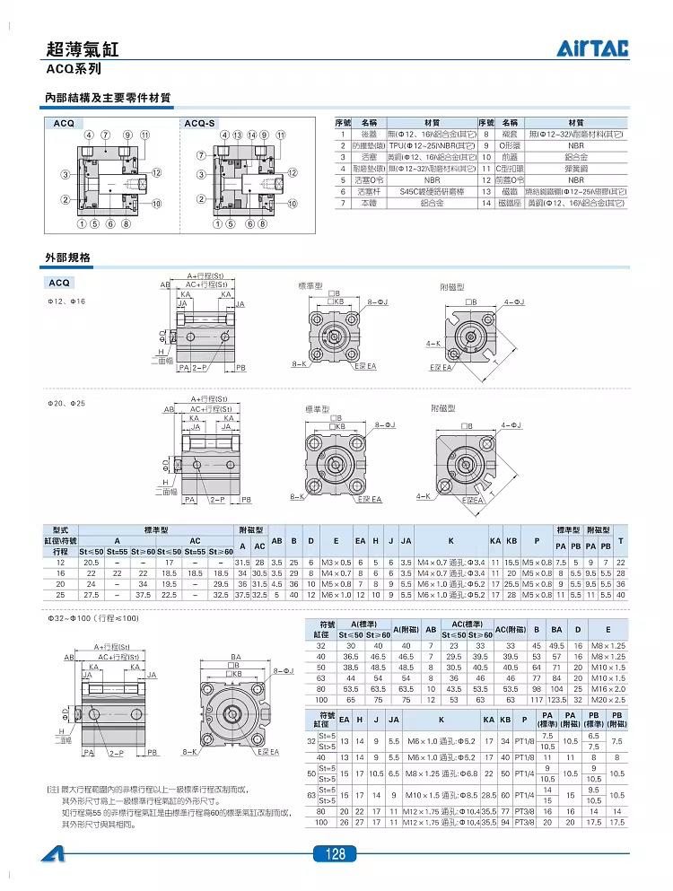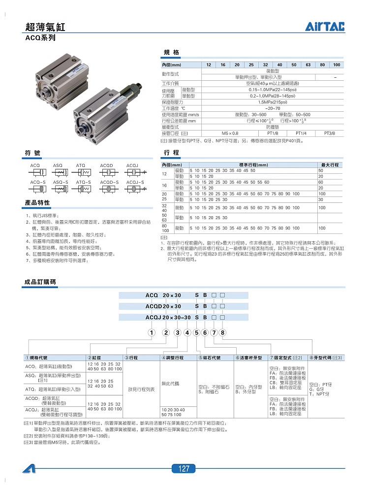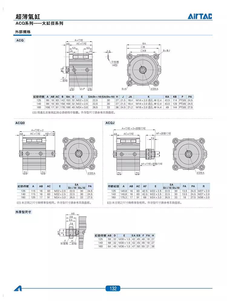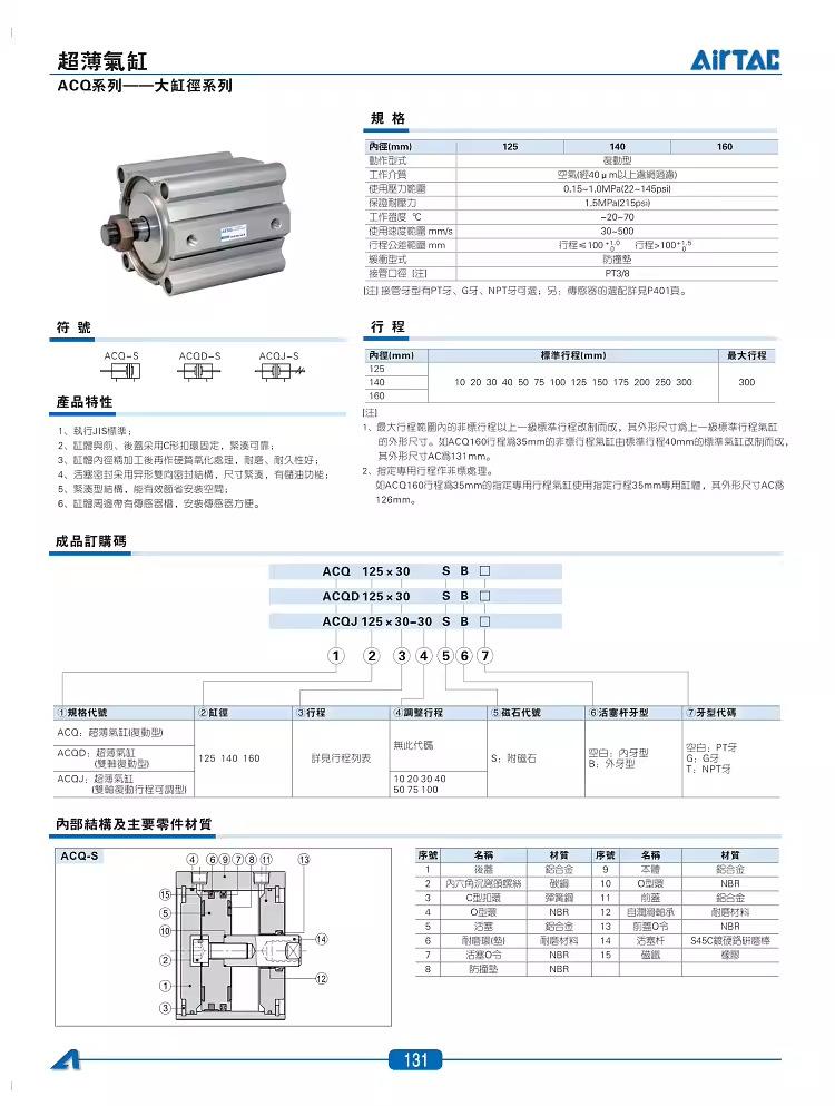 Cilindro delgado de rosca externa original AIRTAC ACQ160 * 150*175*200*250 * 300S-B