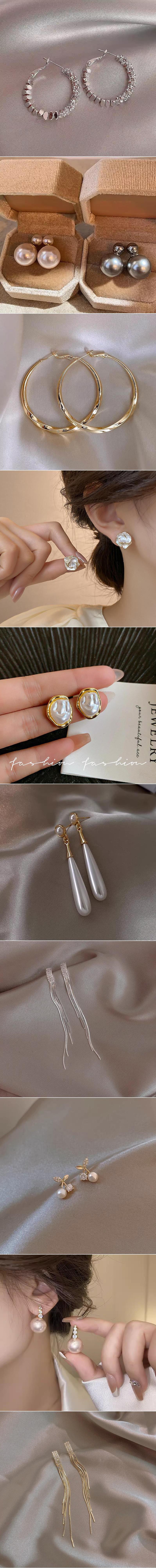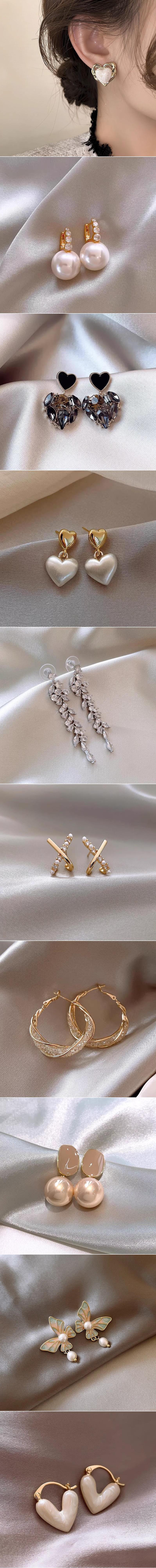 Aretes de Perlas para Mujer Estilo Ins Simple Nicho de Alta Gama Aretes Elegantes Celebridad de Internet Aretes Retro Aguja de Plata Venta al por Mayor