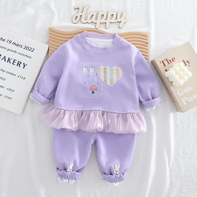 Long Sleeve Little Bunny Heart Sweatshirt Set Purple
