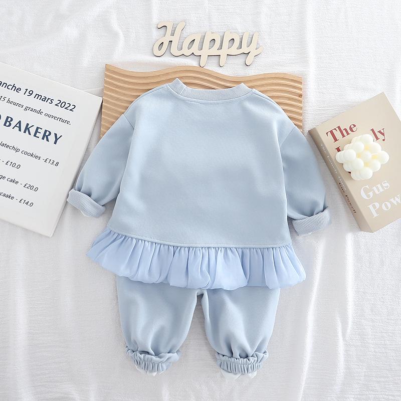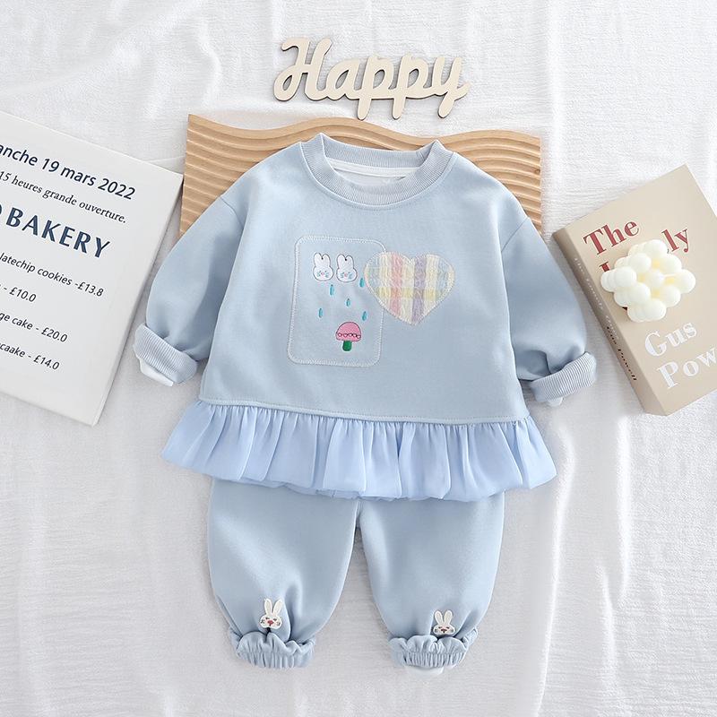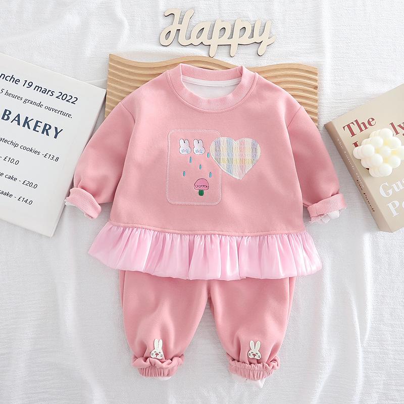 2025 Nuevo Conjunto de Moda para Niñas Sudadera Elegante de Manga Larga con Corazón y Conejito para Bebé Dulce Conjunto de Dos Piezas