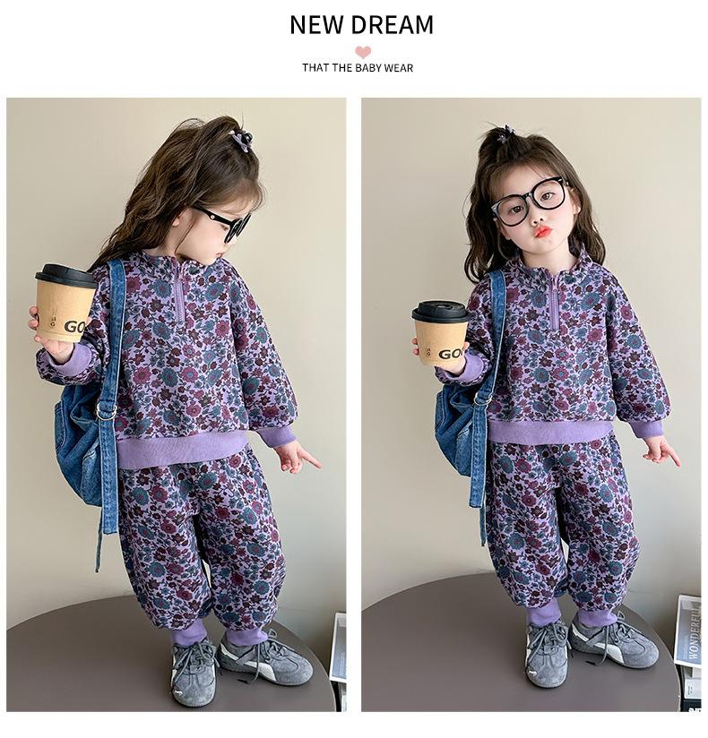 Conjunto de Otoño para Niñas 2025 Nueva Moda Sudadera Floral para Niños Estilo Otoñal Ropa de Tendencia para Bebé Niña Principios de Otoño