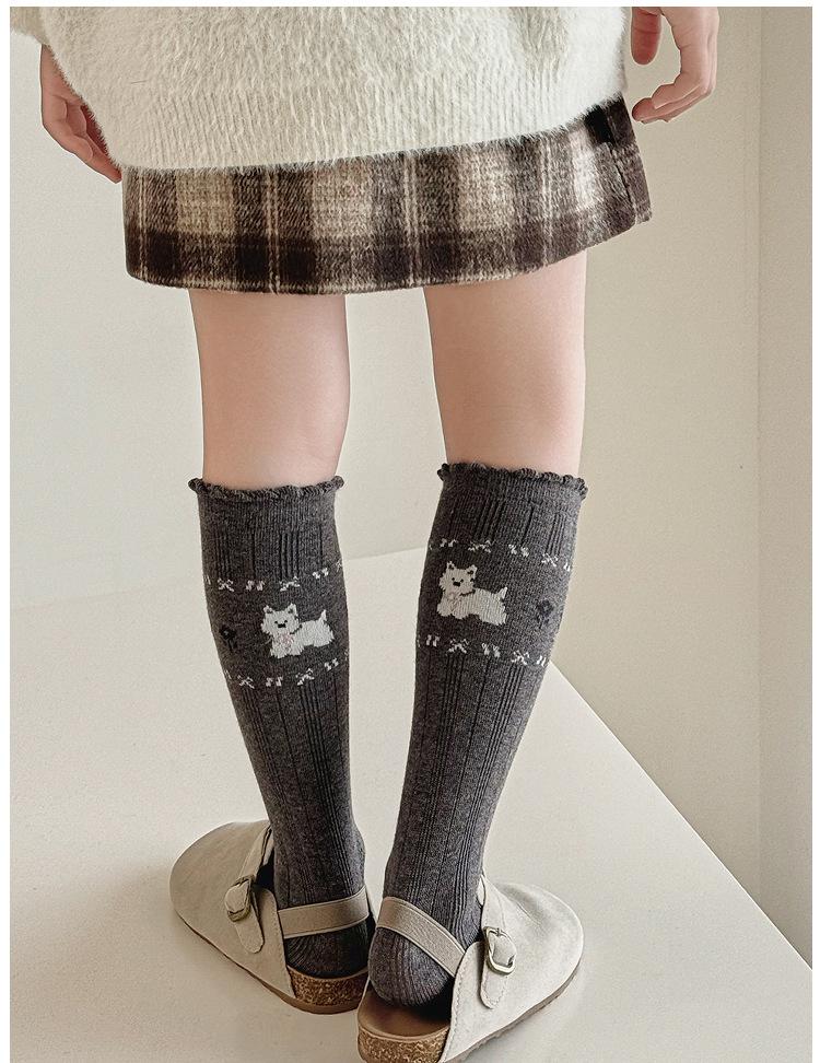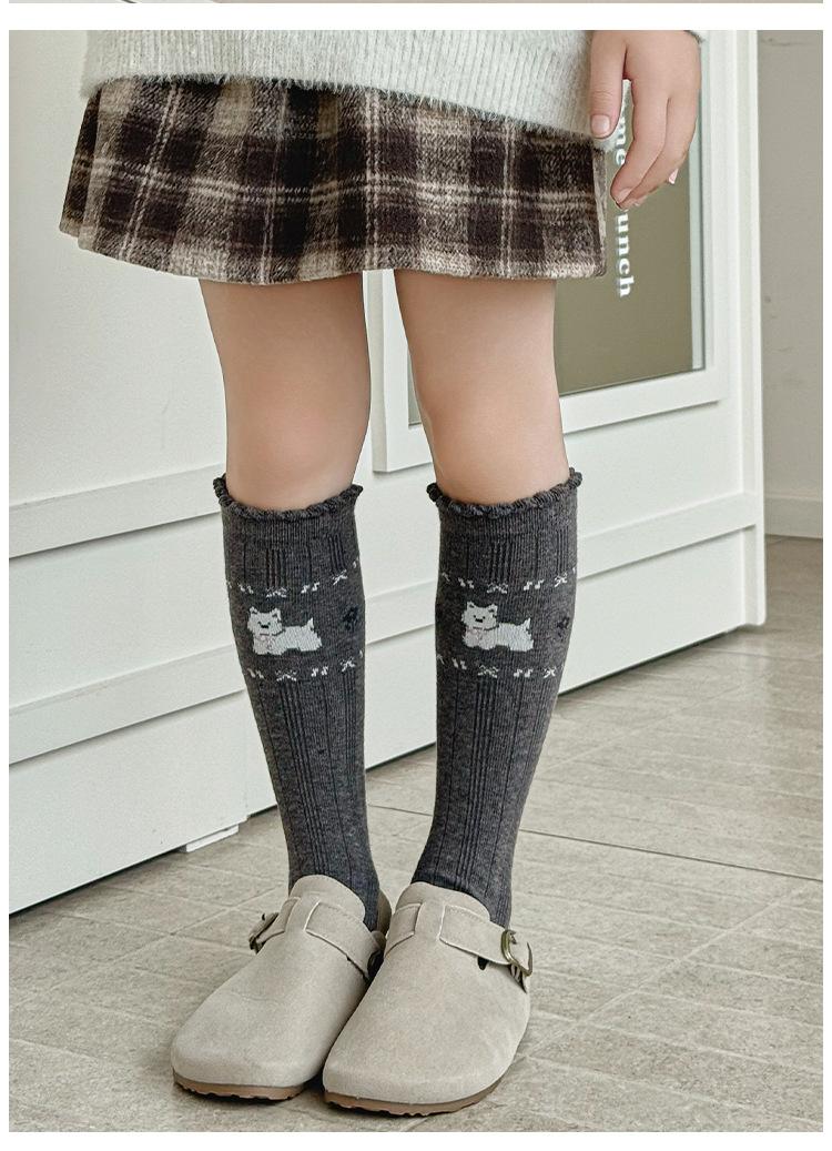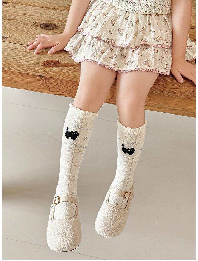 Calcetines hasta la rodilla para niña Primavera Otoño Calcetines de algodón Estilo coreano Calcetines arrugados de cachorro Calcetines para niños Calcetines hasta la pantorrilla Calcetines para bebé Calcetines altos