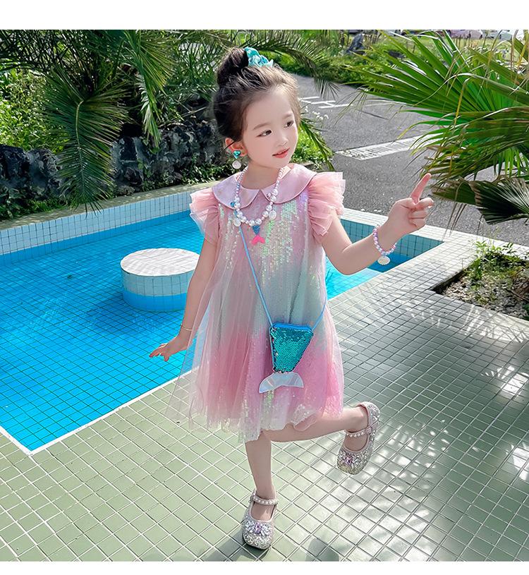 Vestido de Sirena Niñas 2025 Nuevo Verano Estilo Infantil Vestido de Princesa Vestido de Un Año Tutú de Cumpleaños
