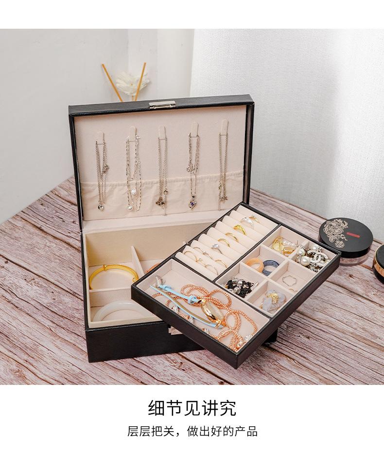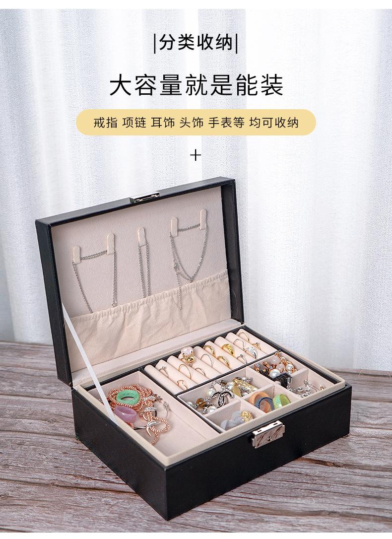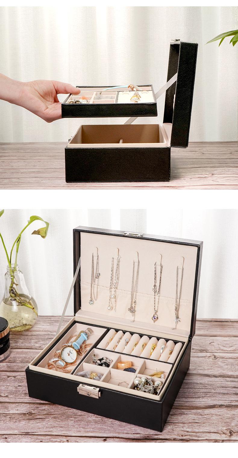 Organizador de Joyero de Doble Capa Caja para Guardar Joyas para Anillos Collares con Cerradura Organizador de Joyas de Cuero PU