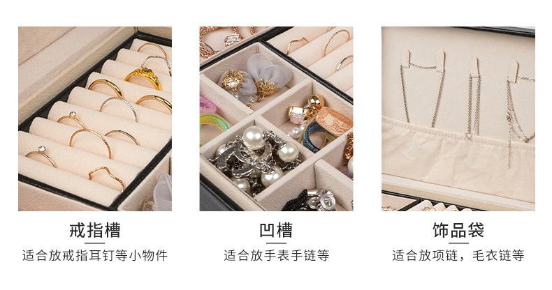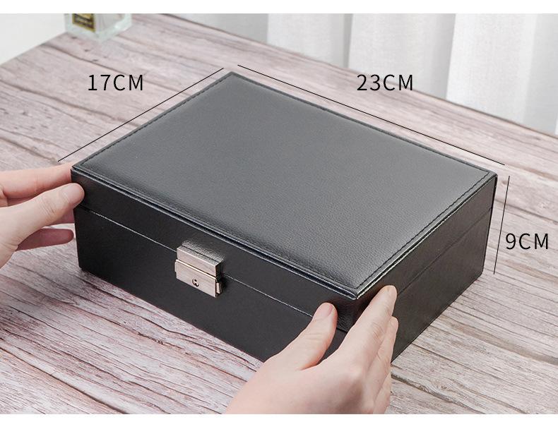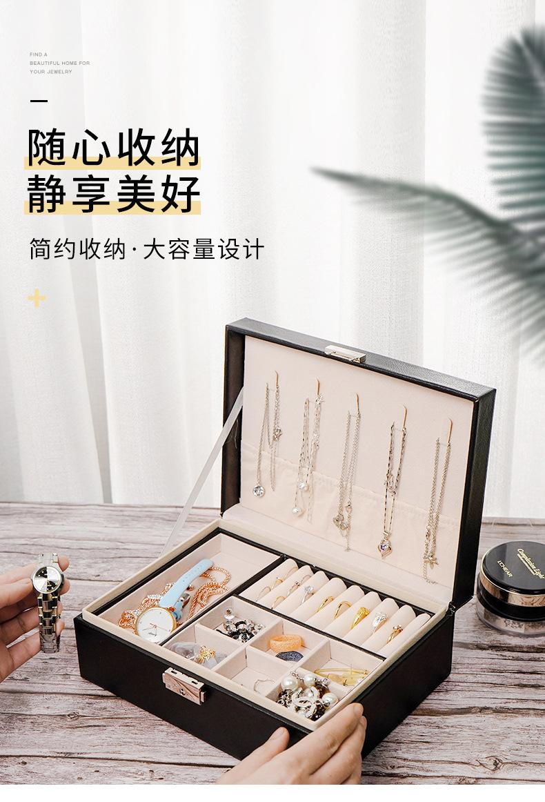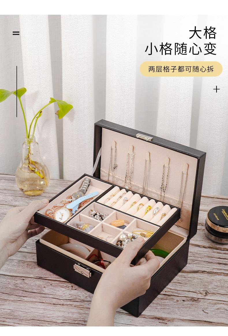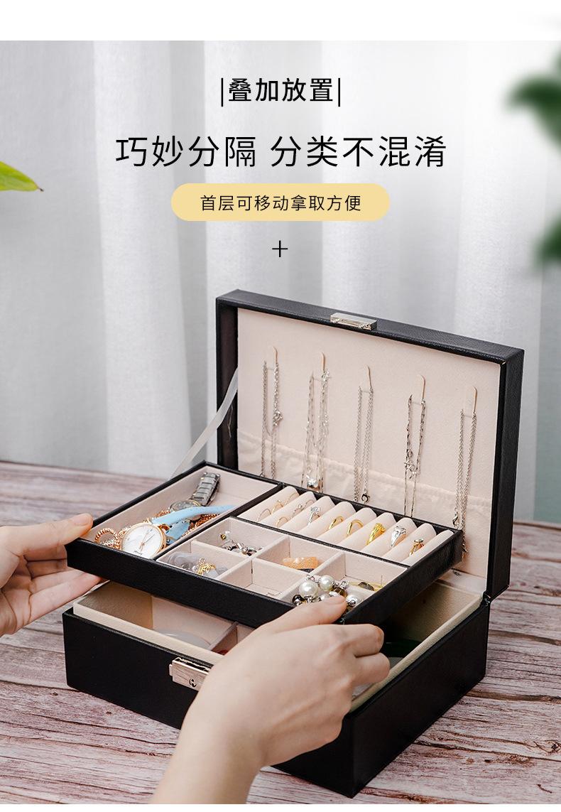 Organizador de Joyero de Doble Capa Caja para Guardar Joyas para Anillos Collares con Cerradura Organizador de Joyas de Cuero PU