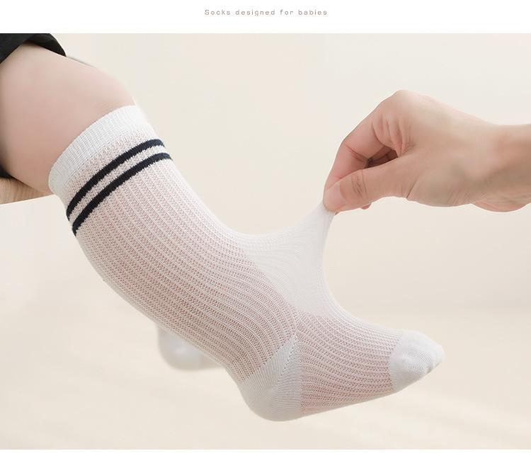 Medias para niños Verano Malla fina Transpirable Calcetines para bebé Estilo universitario Sin costuras Algodón peinado Rayado Calcetines para estudiante