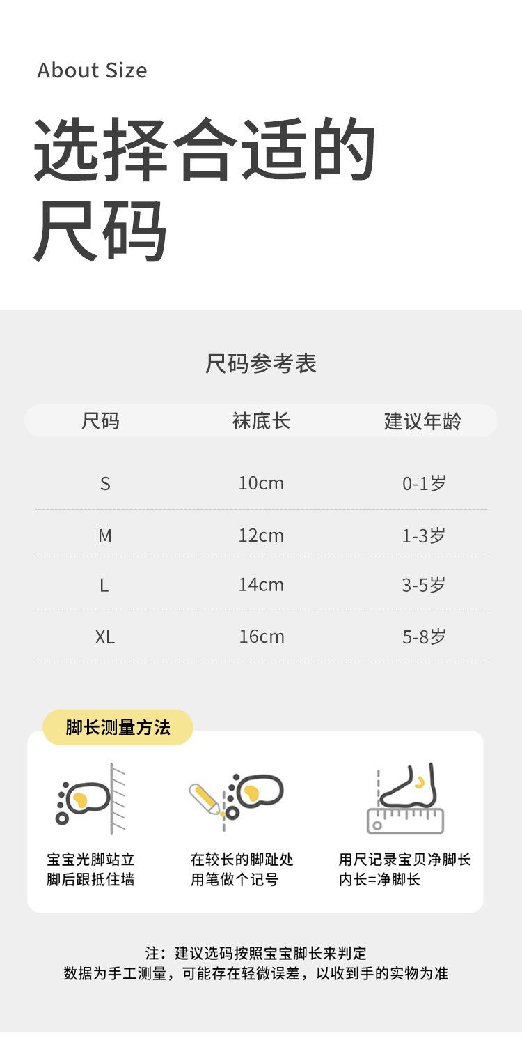 S size 0-1 years old, M size 1-3 years old, L size 3-5 years old, Xl size 5-8 years old