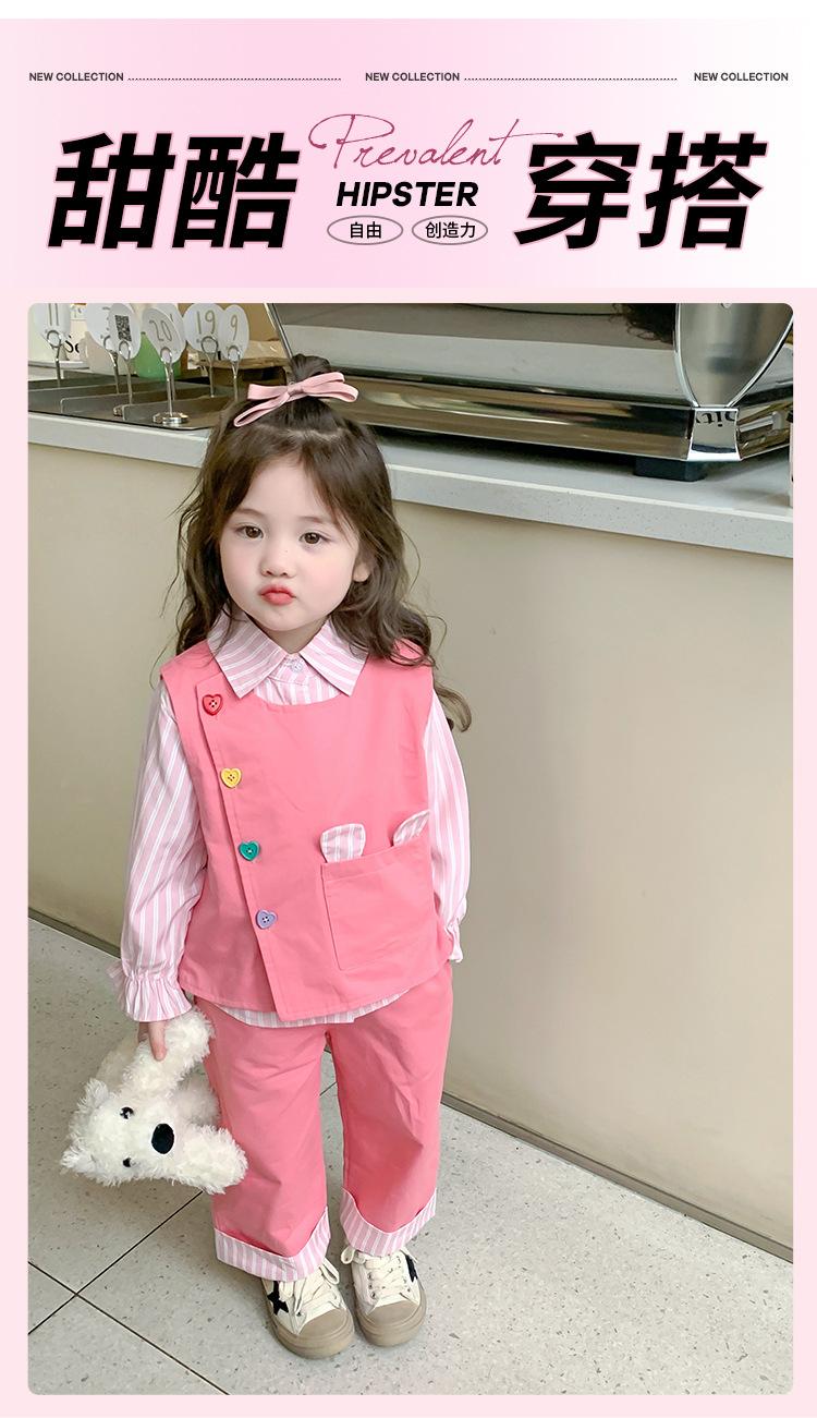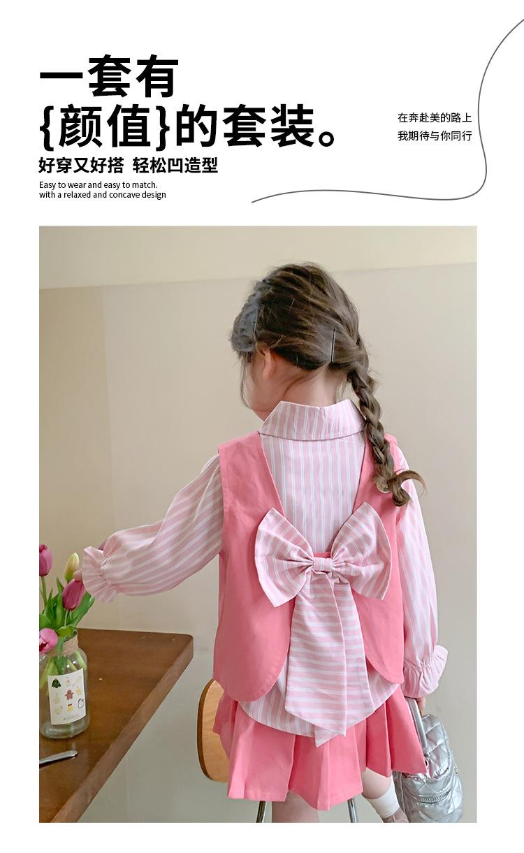 Traje de Primavera y Otoño para Niñas 2025 Nuevo Estilo Occidental Moda Bebé Niña Moda Conjunto de Tres Piezas Ropa de Primavera para Niños Estilo Coreano