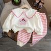 Conjunto para Niñas Primavera Otoño 2025 Nuevo Rojo de Internet Estilo Coreano Niña Bebé Moda Muñeca Camisa Ropa de Otoño para Niños Conjunto de Dos Piezas