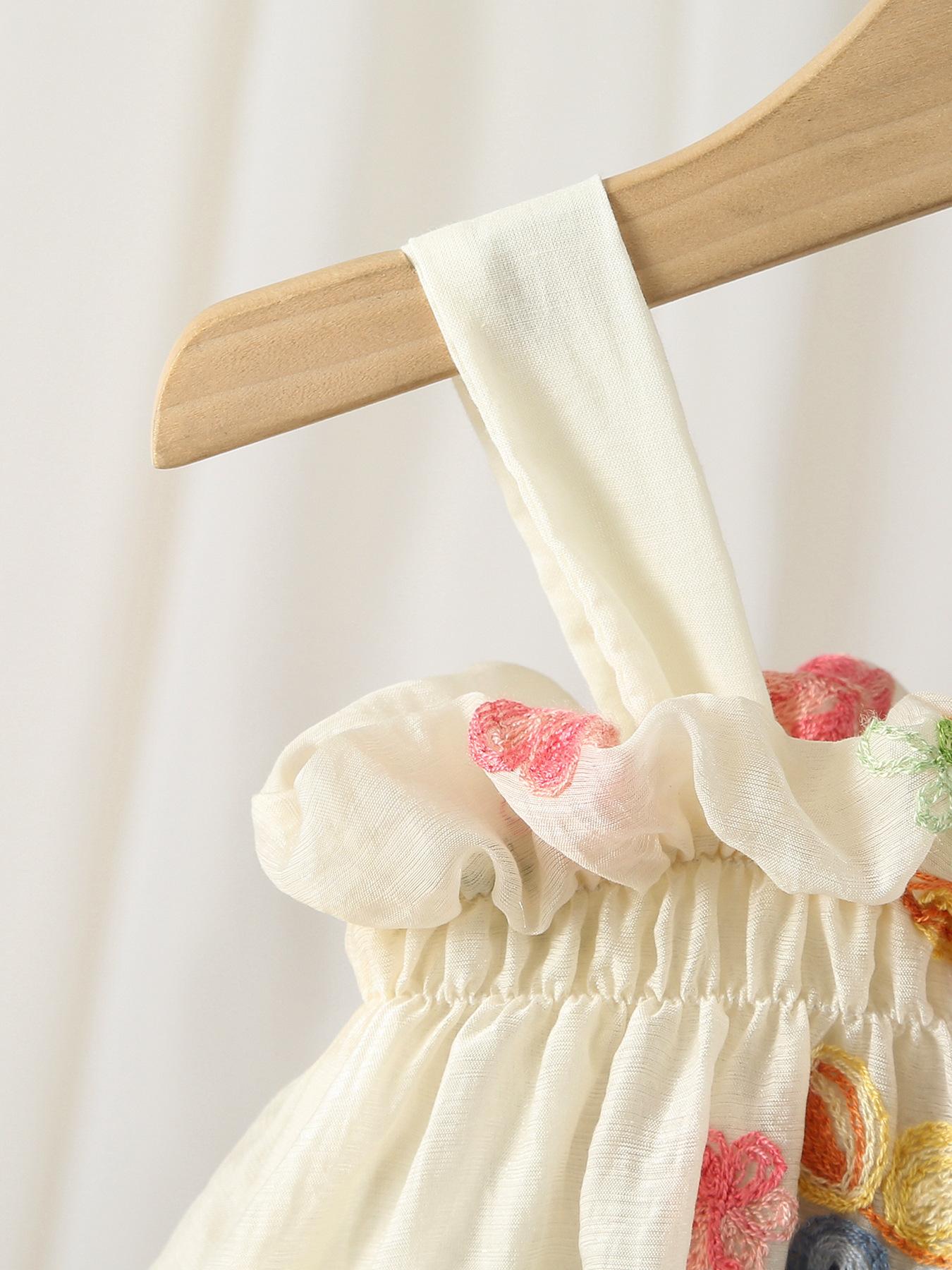 Mameluco de niña verano 2025 nuevo moderno vestido chaleco de princesa para niños vestido halter de playa para vacaciones de niña