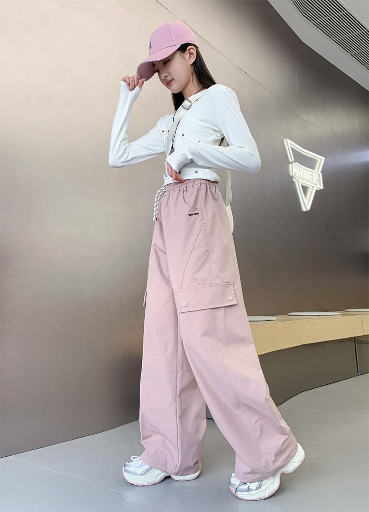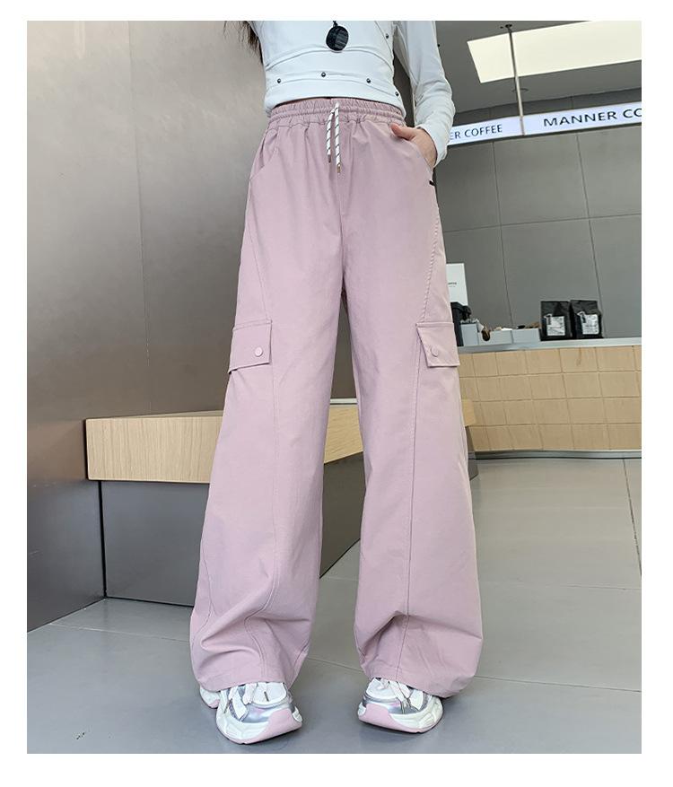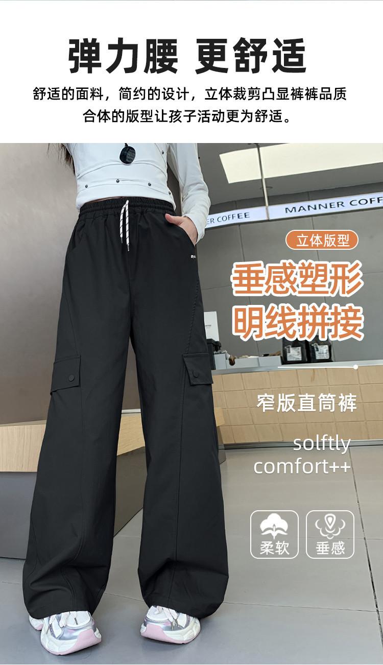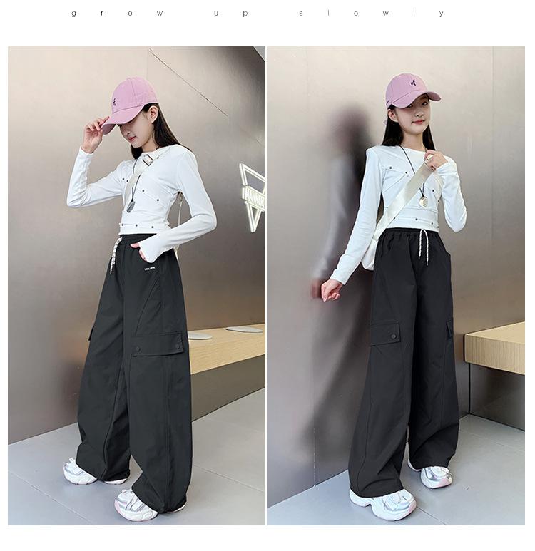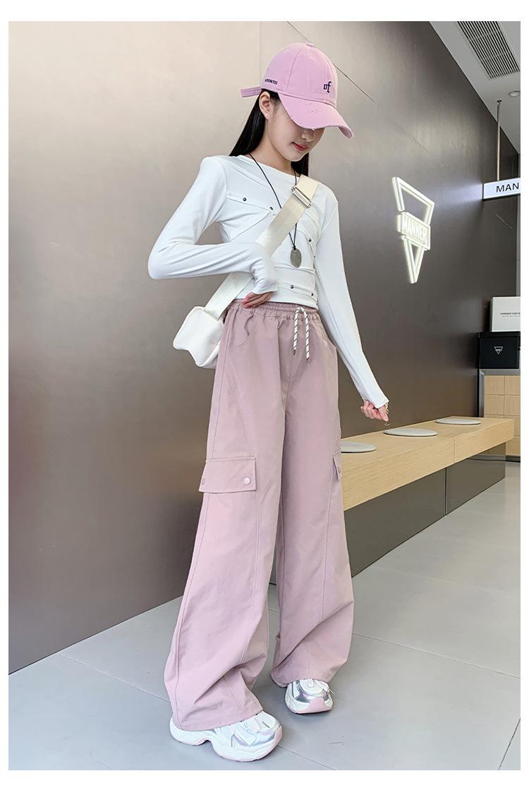 Compra Pantalones cargo para niña otoño 2025 nuevo estilo niños grandes niña a la moda casual pantalones largos modernos rosa foto real pantalones de pierna ancha al por mayor en Joom.pro