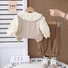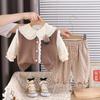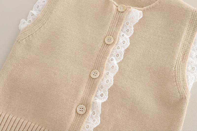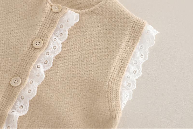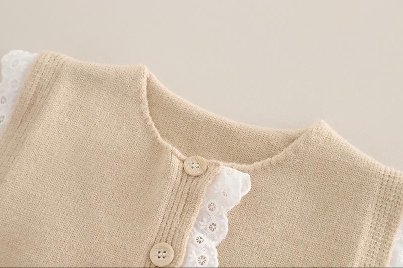 Conjunto de Otoño para Niñas 2025 Nuevo Trendy Ropa para Niños Chaleco de Encaje Suéter Bebé Primavera Otoño Conjunto de Tres Piezas