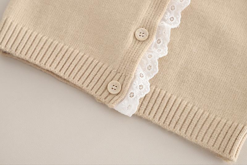 Off-white lace sweater three-piece set, Brown Lace Sweater Three-Piece Set