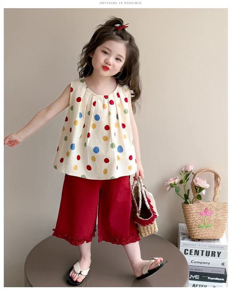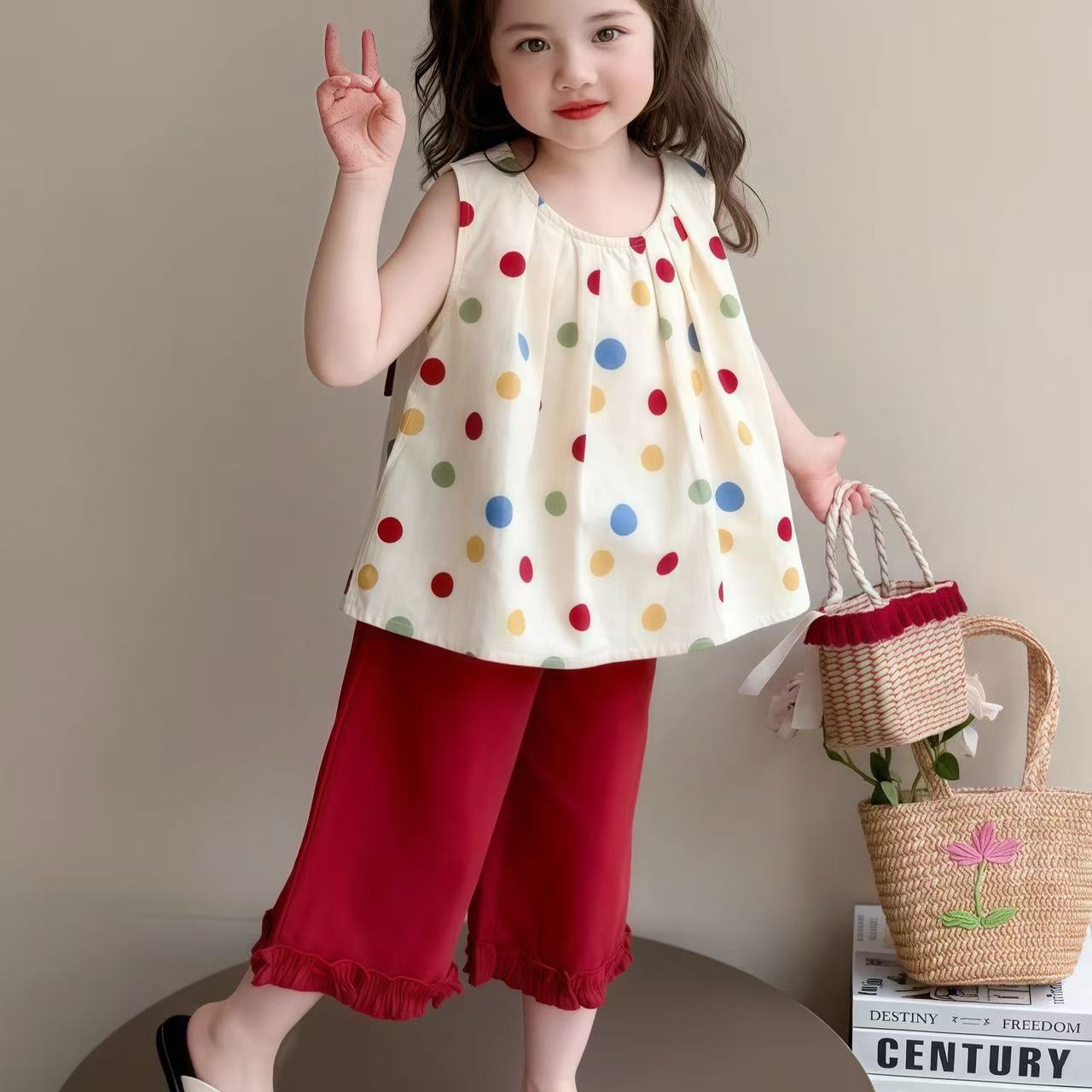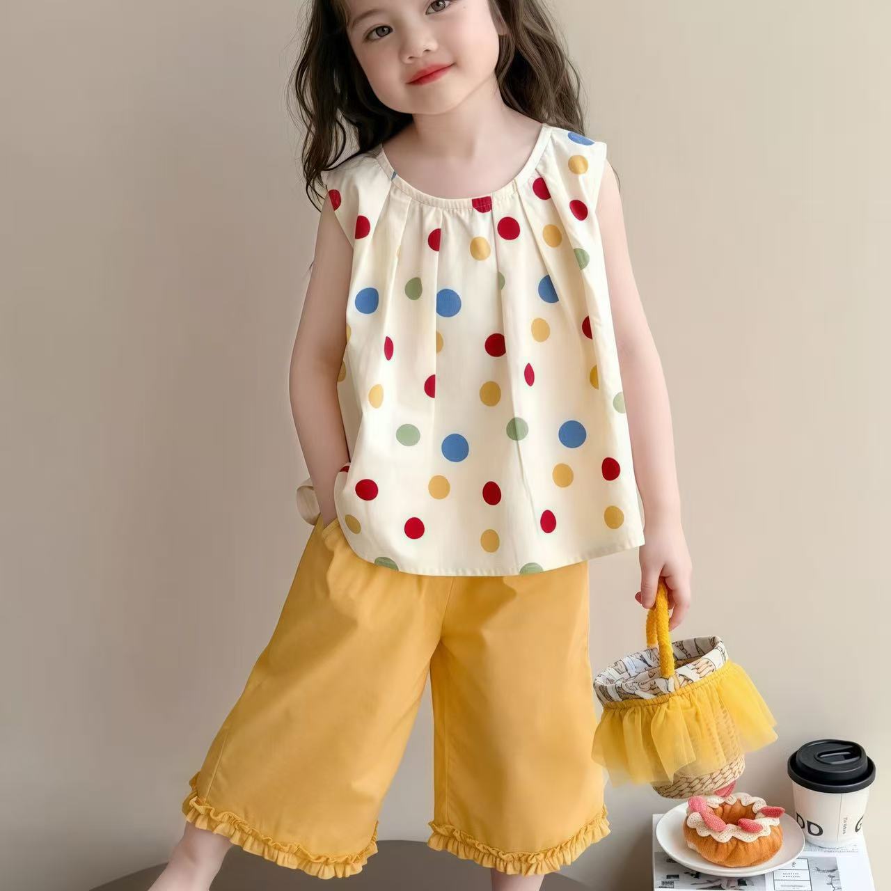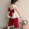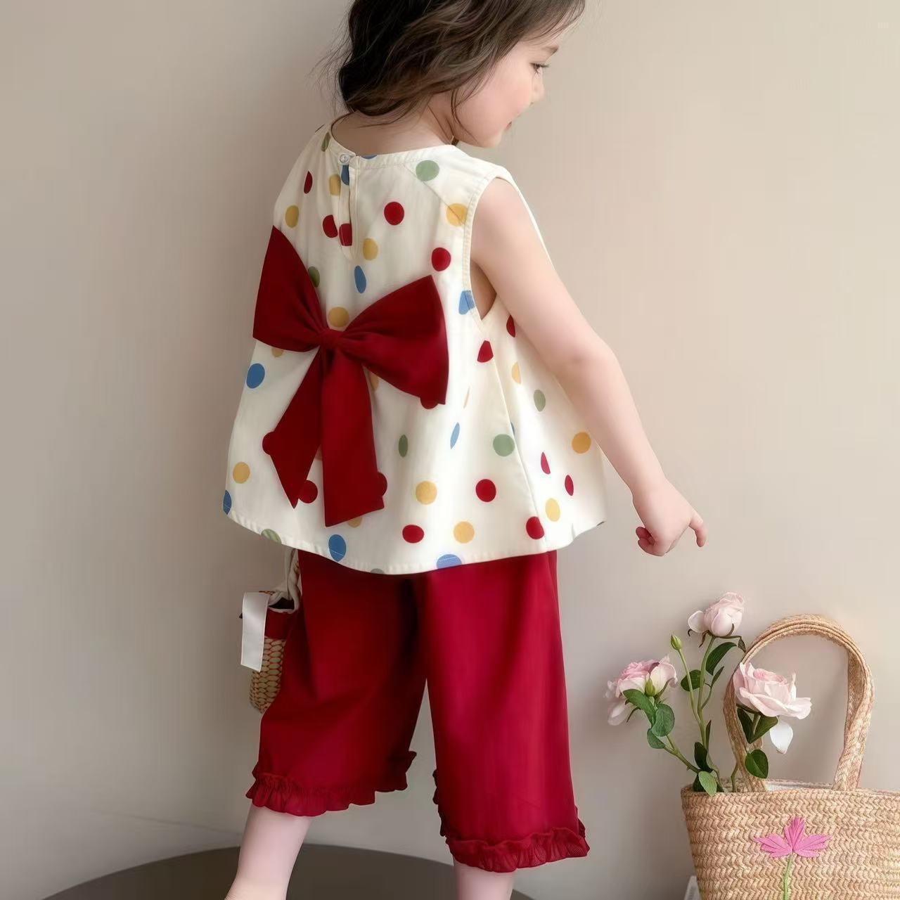 Conjunto de Verano para Niñas 2025 Nueva Moda Lazo Ropa Infantil Chaleco para Bebé Pantalones de Pierna Recta Conjunto de Dos Piezas