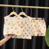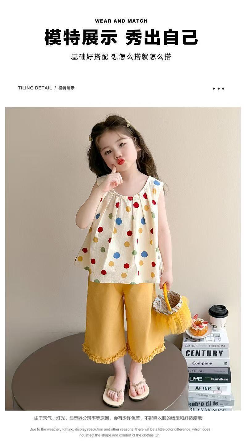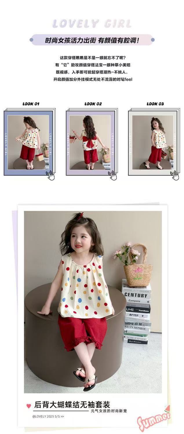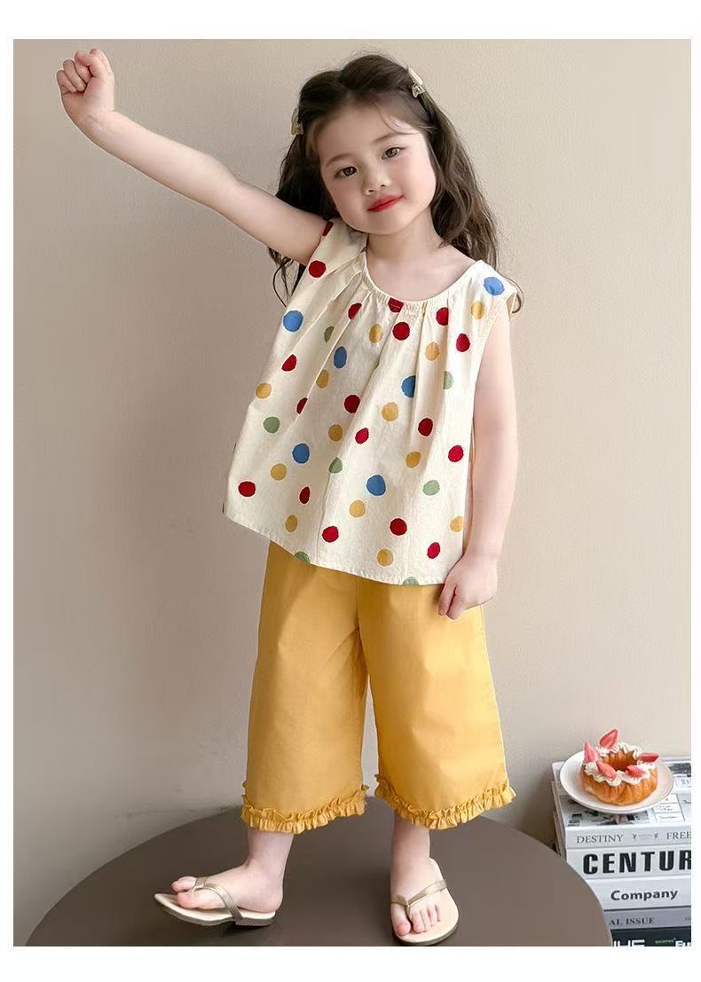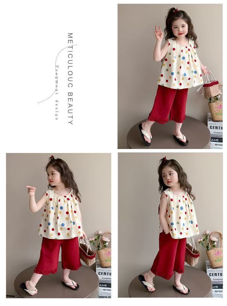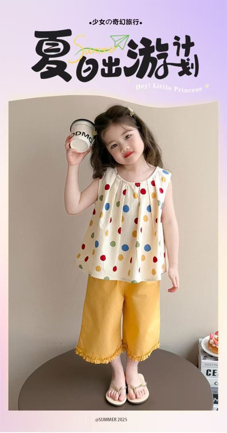 Conjunto de Verano para Niñas 2025 Nueva Moda Lazo Ropa Infantil Chaleco para Bebé Pantalones de Pierna Recta Conjunto de Dos Piezas