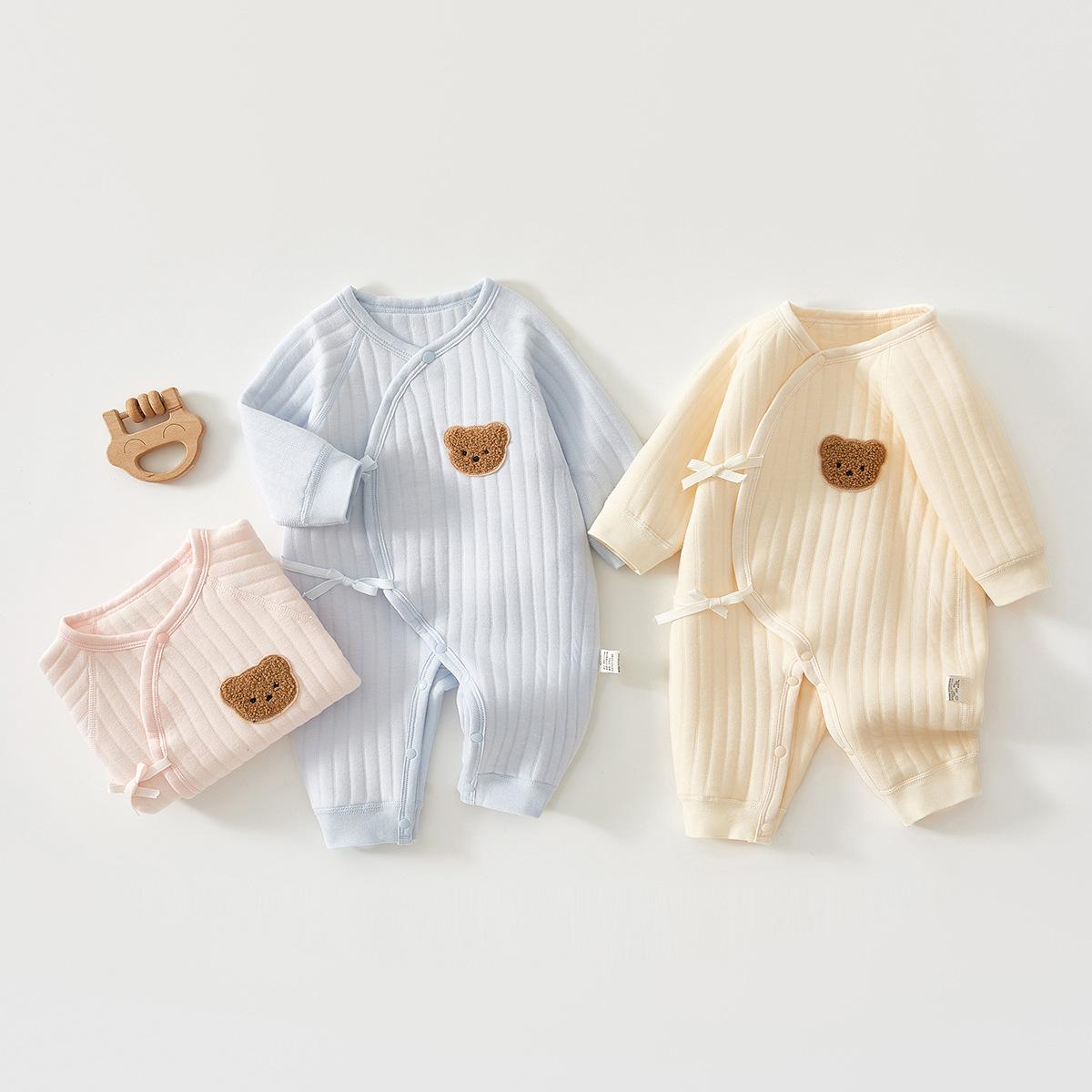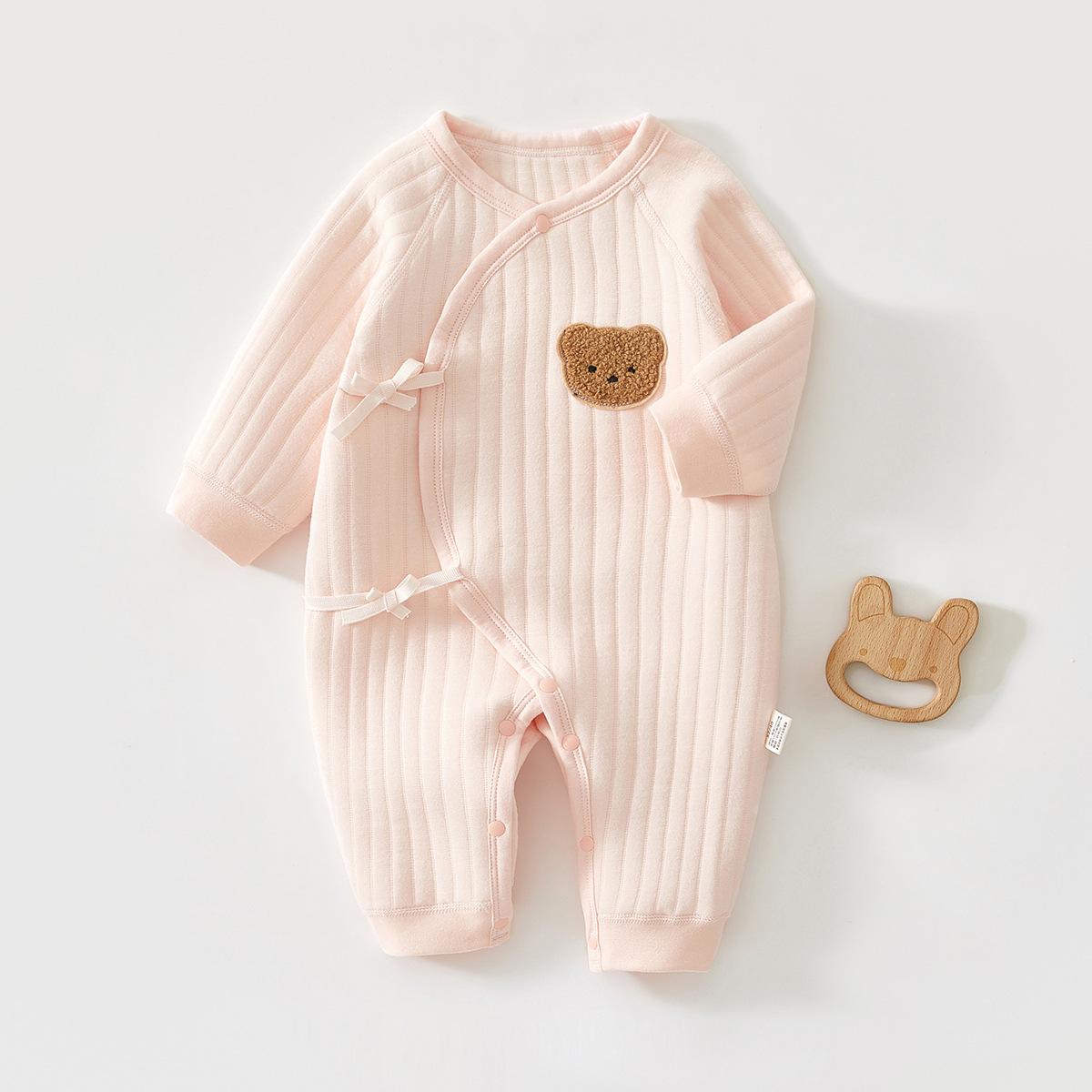 Warm butterfly bodysuit pure yellow embroidered bear, Warm onesie with pink embroidered bear, Warm onesie with...