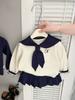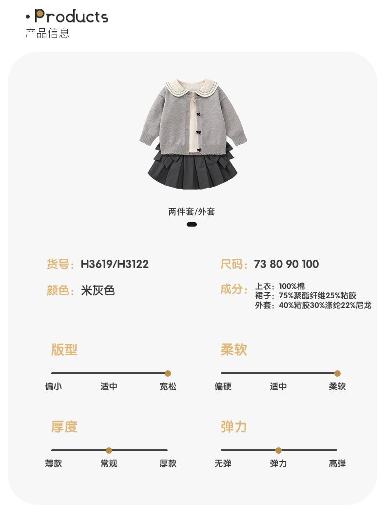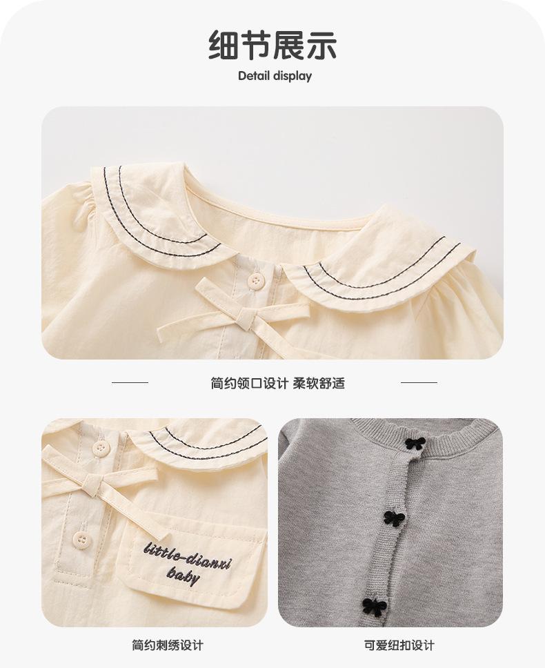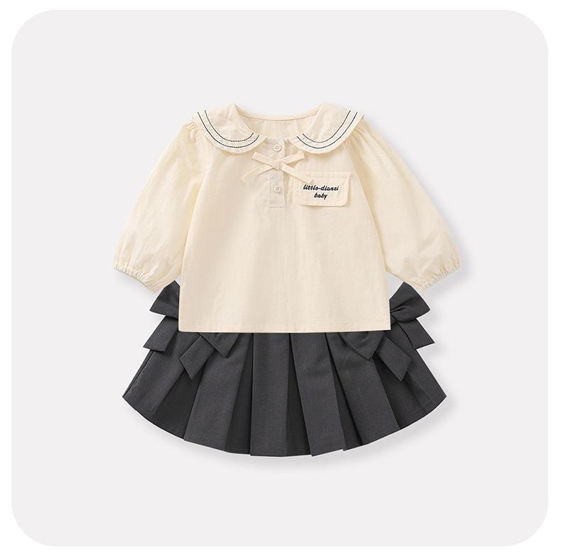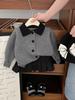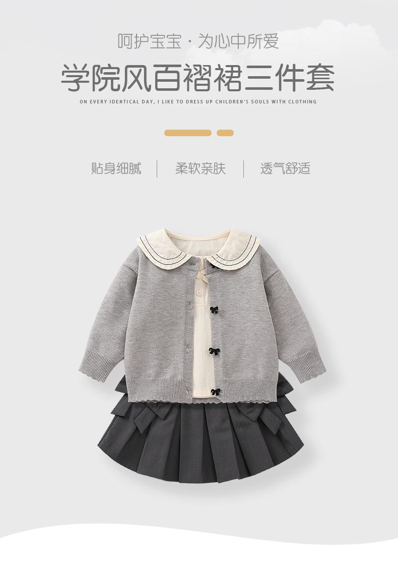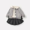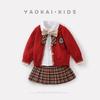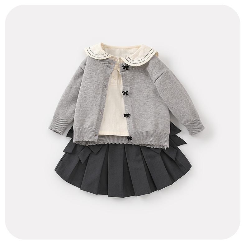 Conjunto de Otoño 2025 para Bebé y Niño Pequeño Estilo Preppy Cárdigan de Punto para Bebé Camisa Falda Corta Conjunto de Tres Piezas a la Moda