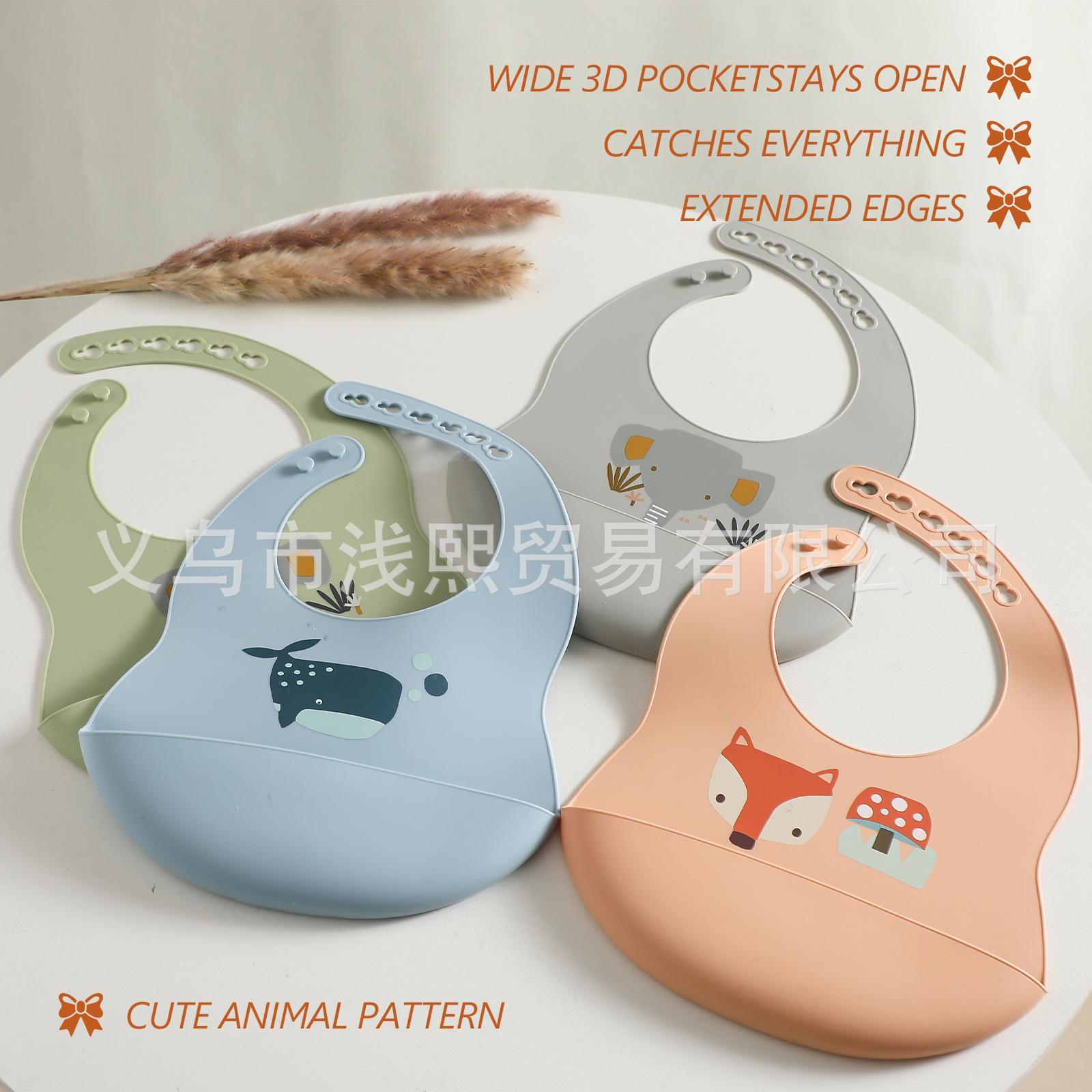 Babero de Silicona de Animales de Dibujos Animados para Niños para la Cena Babero Impermeable para Bebé Recién Nacido para Casa