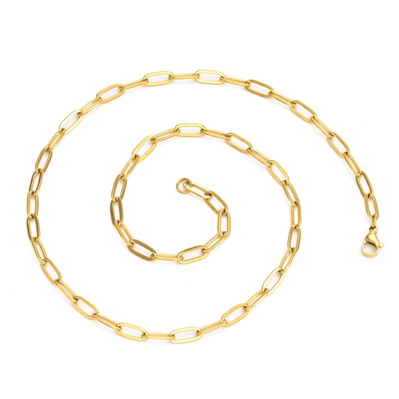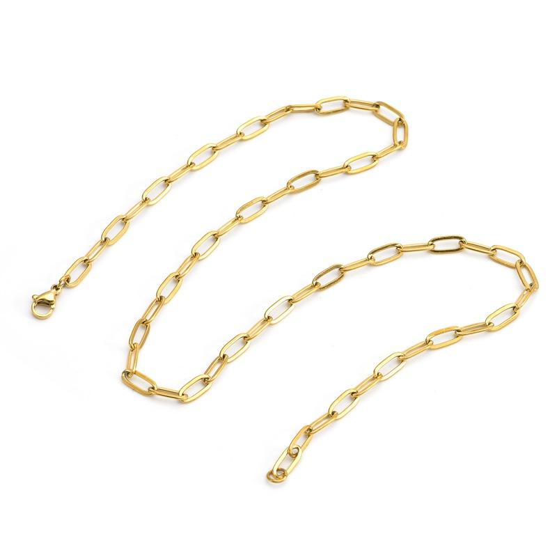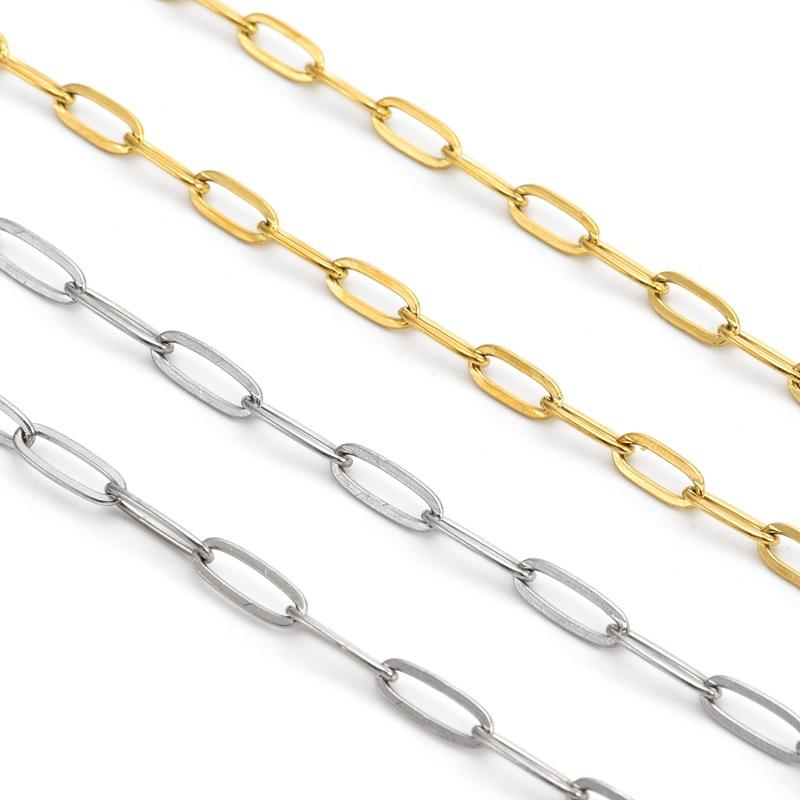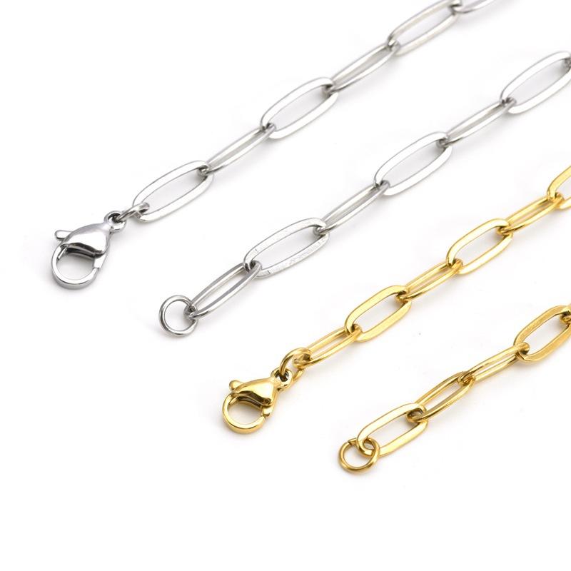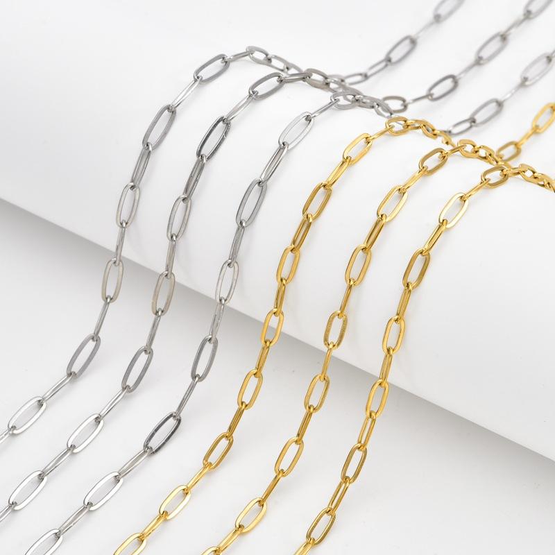 Collar de Cadena de Clip de Papel Rectangular de Acero Inoxidable 18K al Vacío Cadena de Eslabones Ovalados Aplanados Largos Cruzados Accesorios DIY Cadena de Joyería