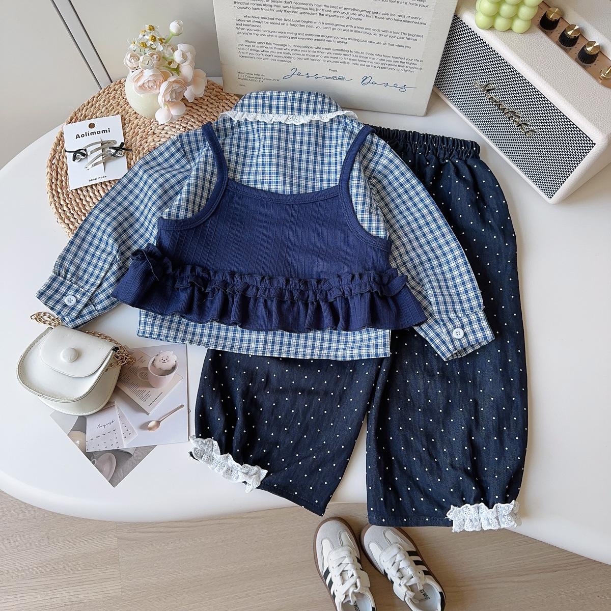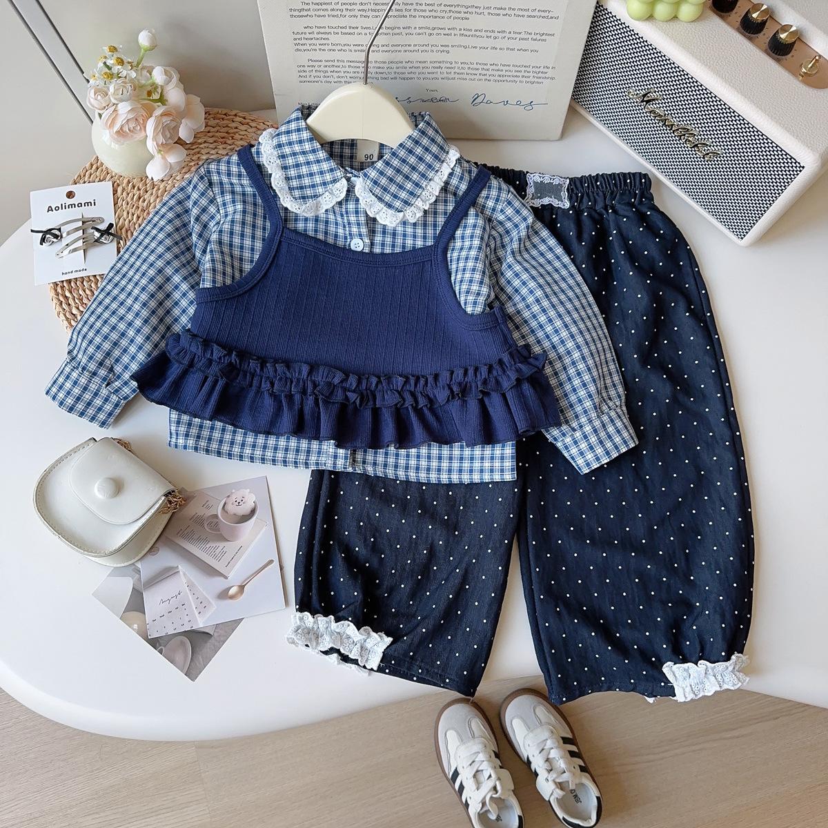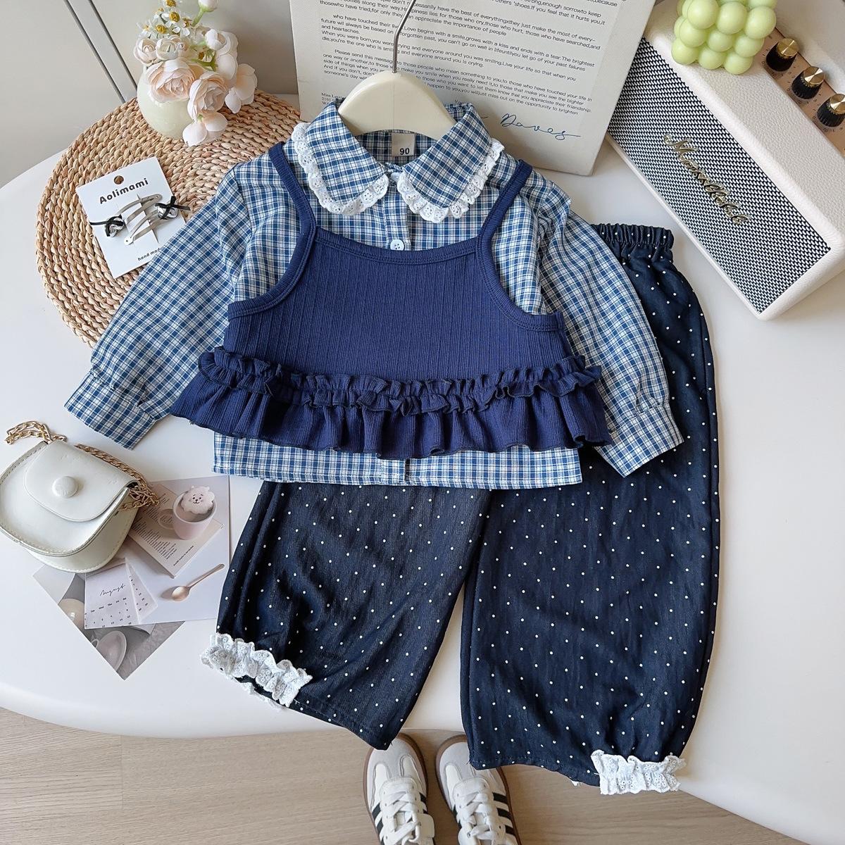 Pantalones largos estilo coreano para niñas Otoño Nuevo Bebé Niña Camiseta Chaleco Tirantes Conjunto de dos piezas