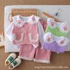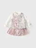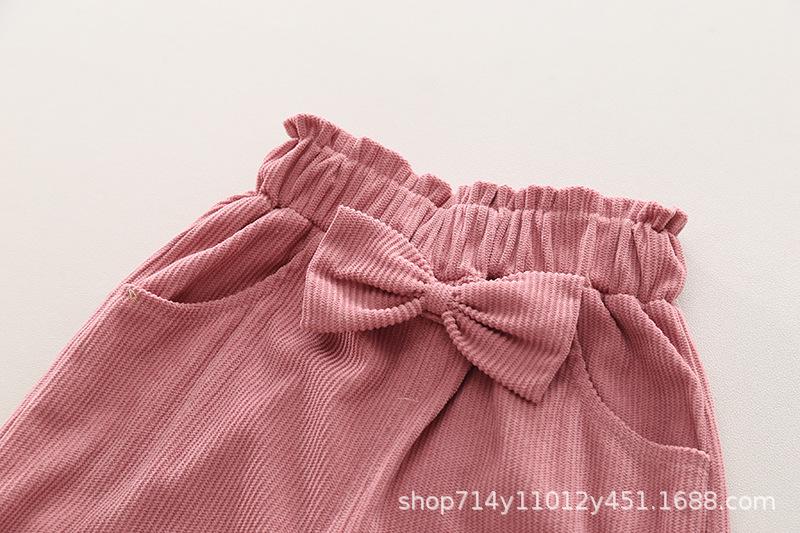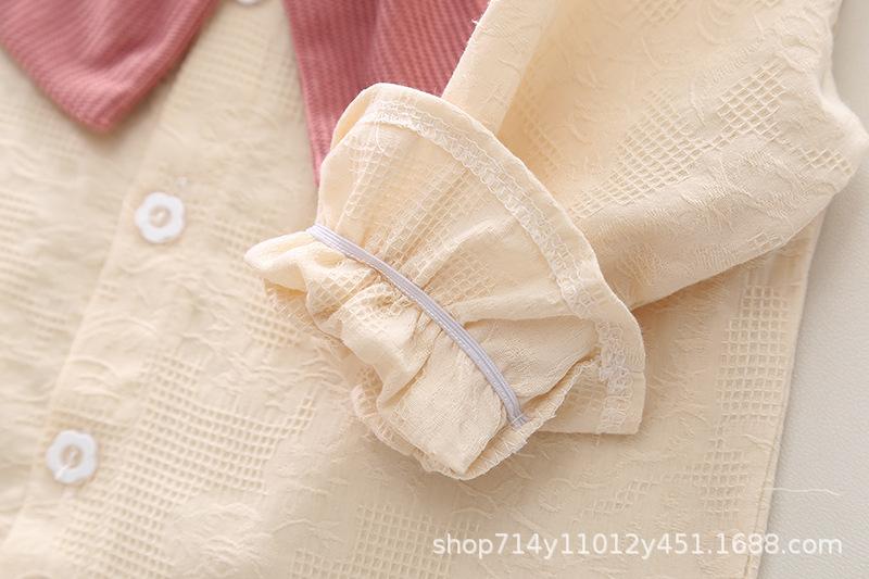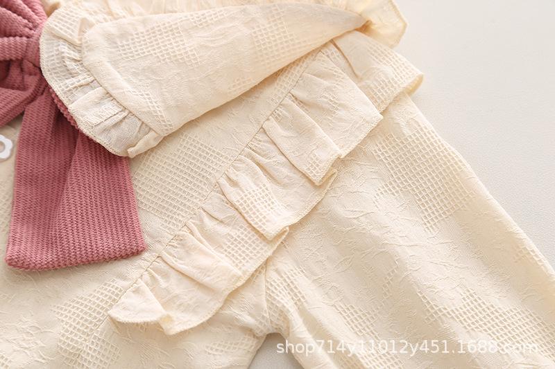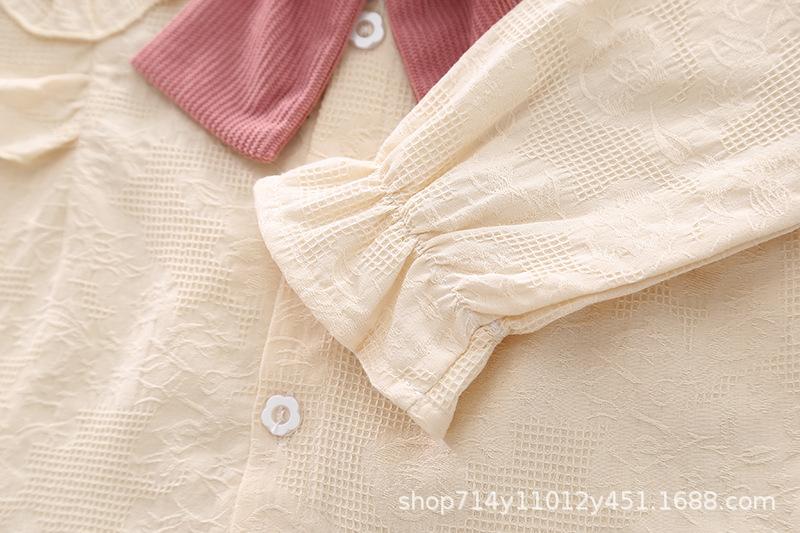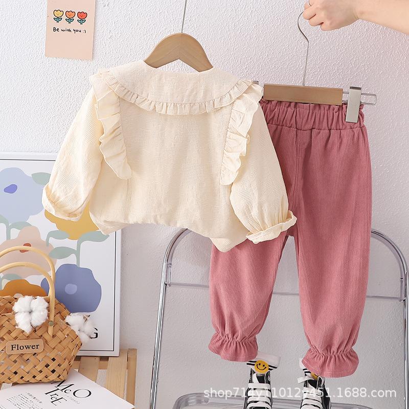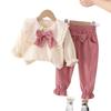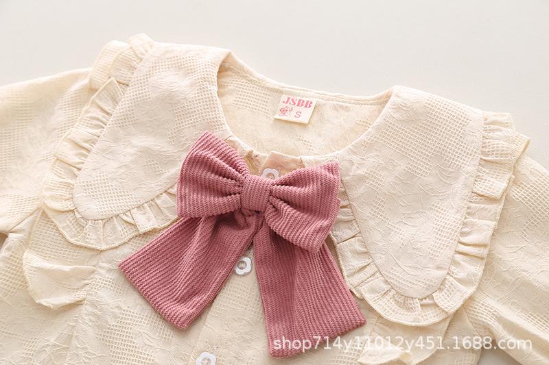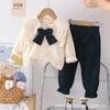 Otoño 2025 Nuevo Estilo Coreano para Niñas Cuello Peter Pan Color Sólido Set de Lazo Grande Ropa de Otoño para Bebé Niña Set de Dos Piezas