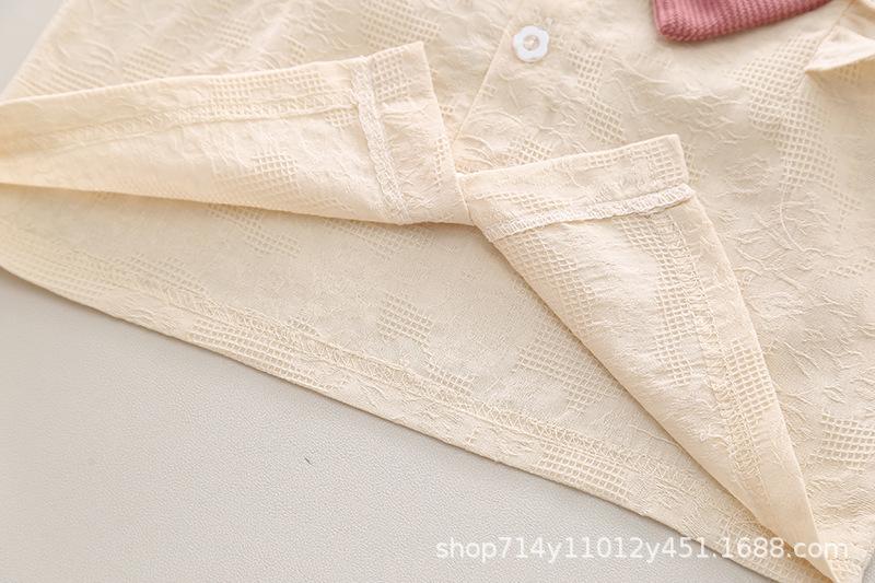 Long Sleeve Jacquard Shirt Set Pink
