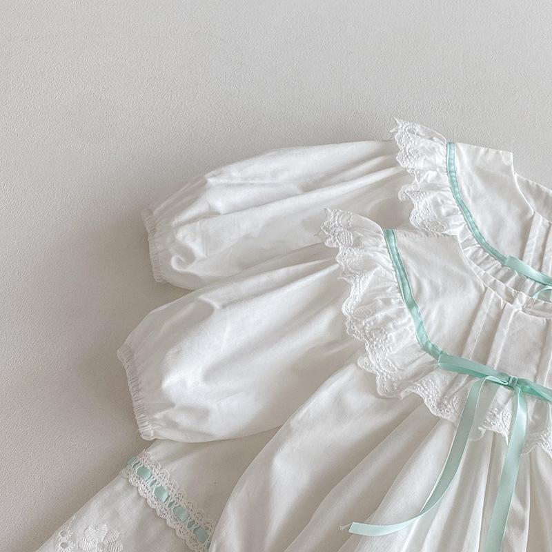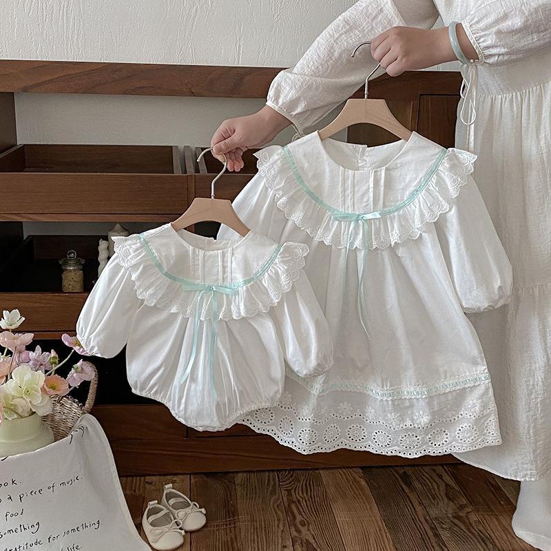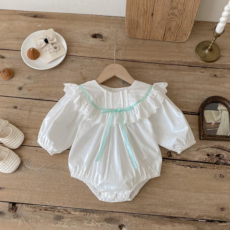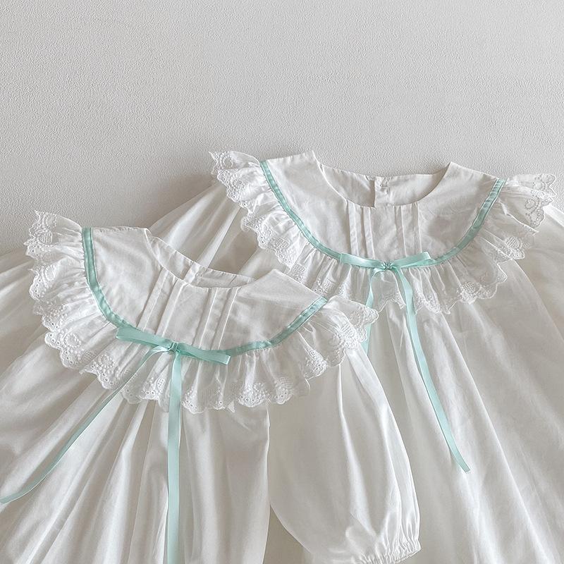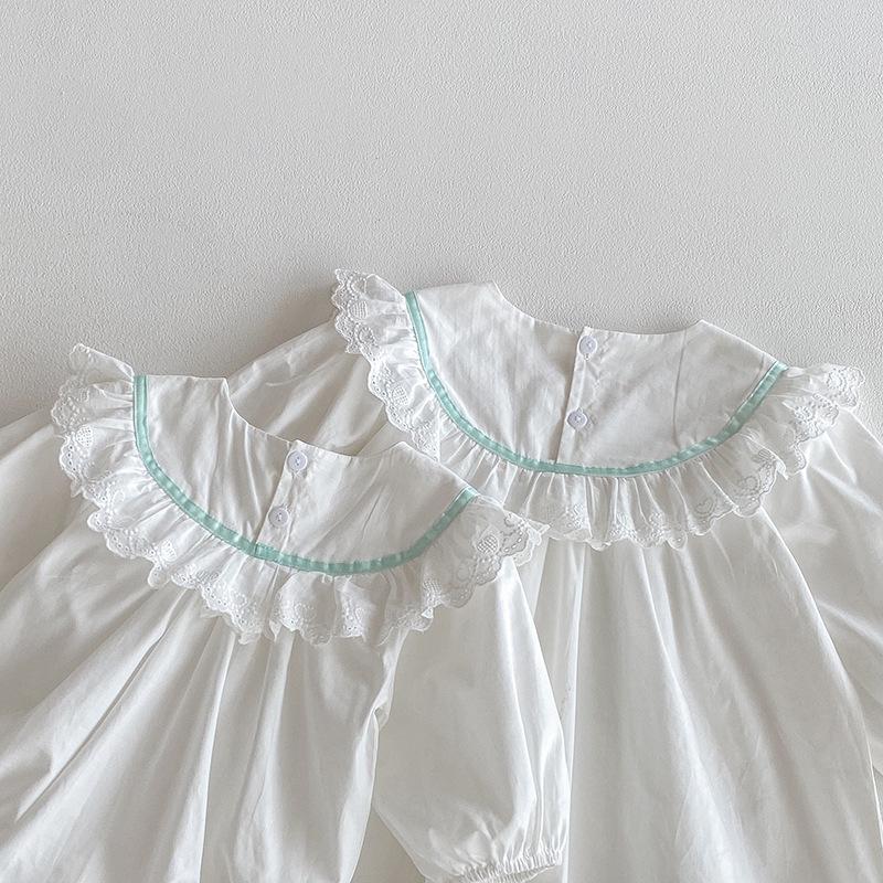 Ropa de bebé otoño nuevo estilo coreano niña pelele de bebé vestido de manga larga niña encaje estilo Mori conjunto de hermana