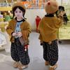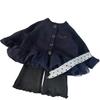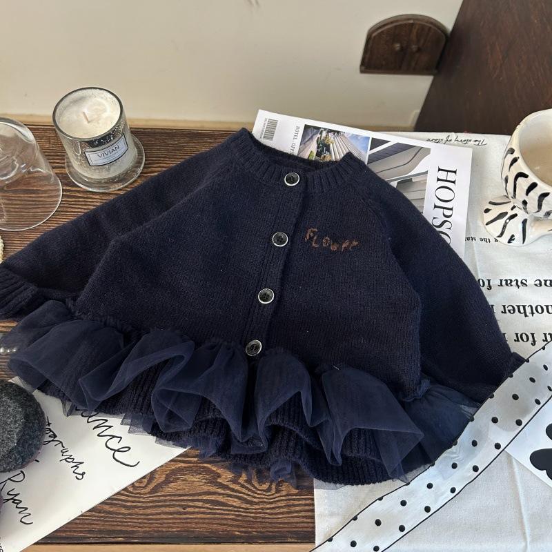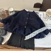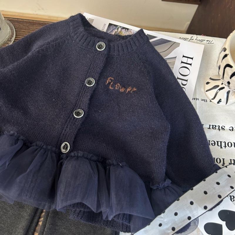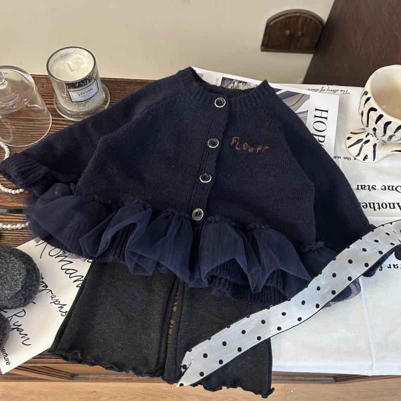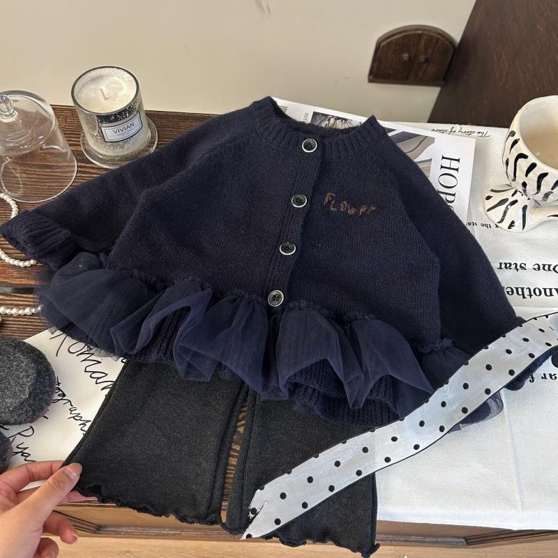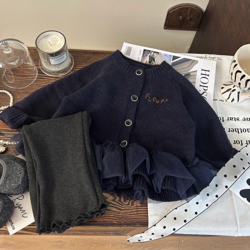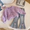 Ropa para Niños Estilo Coreano 2025 Nuevo Otoño Cárdigan de Punto Bordado para Niñas Pantalones Acampanados Grises de Moda para Niños Conjunto de Dos Piezas