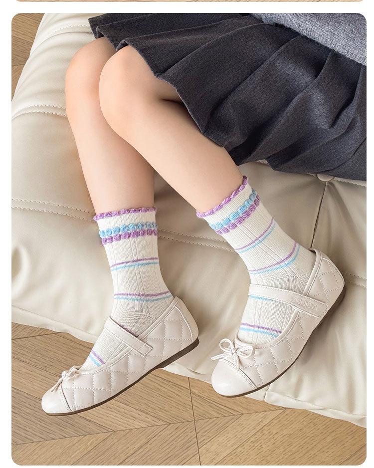 Calcetines Nuevos para Niñas Otoño Dulces Media Caña Algodón Peinado Sin Costuras Lindo Encaje Calcetines para Niños Calcetines de Algodón de Doble Hilado