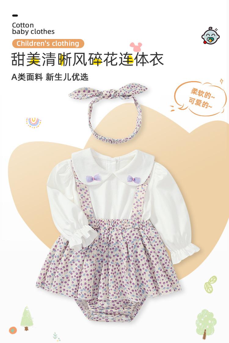 Ropa de Bebé Primavera y Otoño Nuevo Cuello de Muñeca Manga Larga Estilo Coreano Ha Vestido Bebé Niña Tirantes Falsos Moda Princesa Traje para Gatear