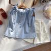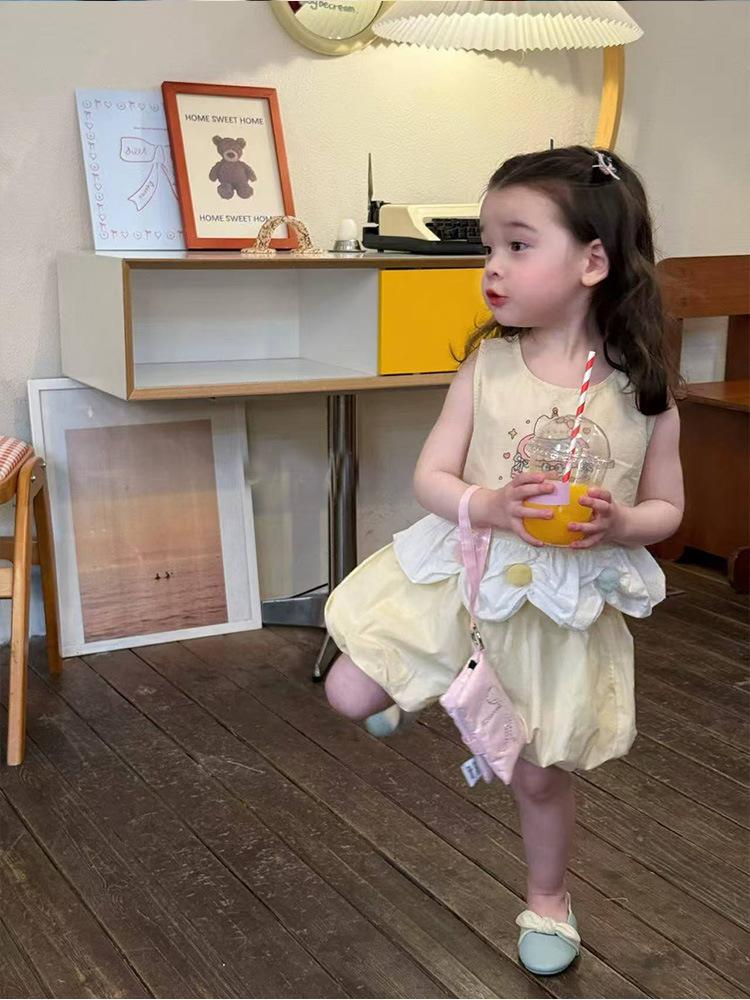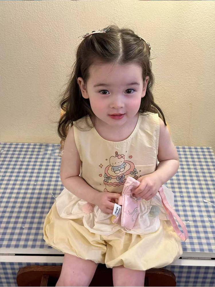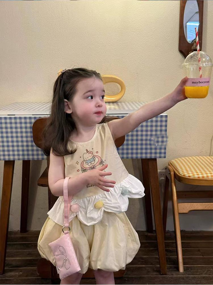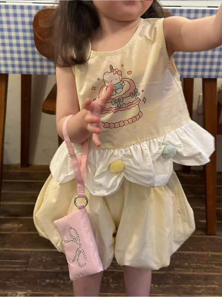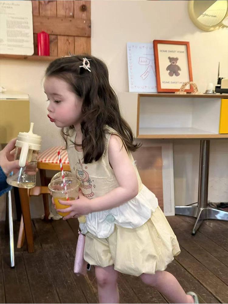 Traje para niña 2025 Verano Nuevo Infantil Estilo Occidental Estampado de Dibujos Animados Bebé Top sin Mangas Flor de Capullo Shorts Linterna