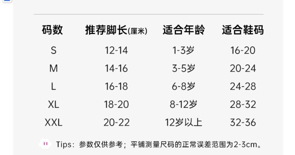 3-5 years old recommended foot length 14-16CM [shoe size 20-24] [10A antibacterial socks]