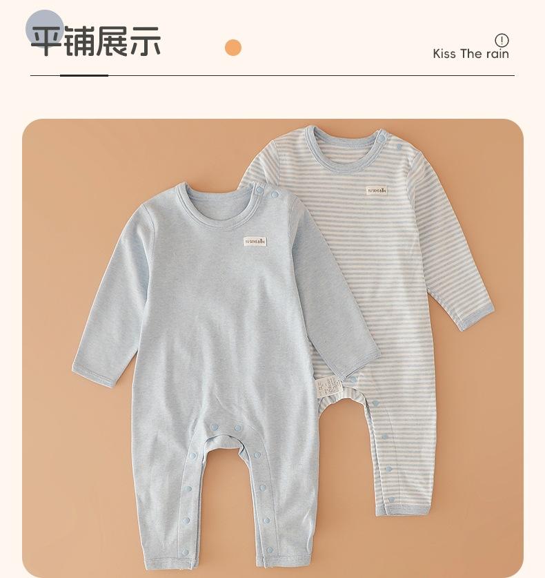 Blue Striped English Label Long-Leg Romper, Blue Solid Color English Label Long-Leg Romper, Dark Gray Striped ...