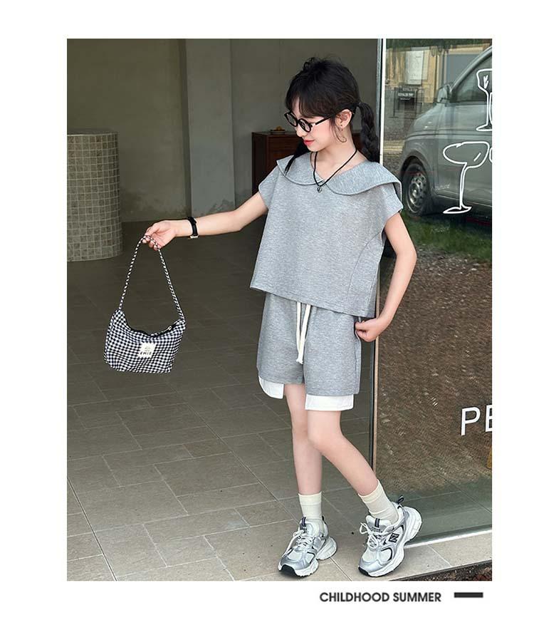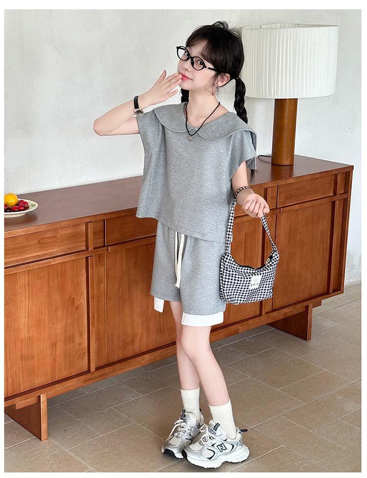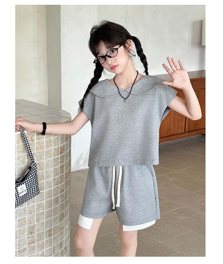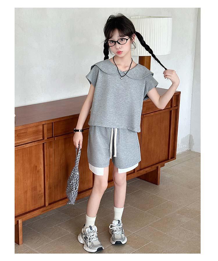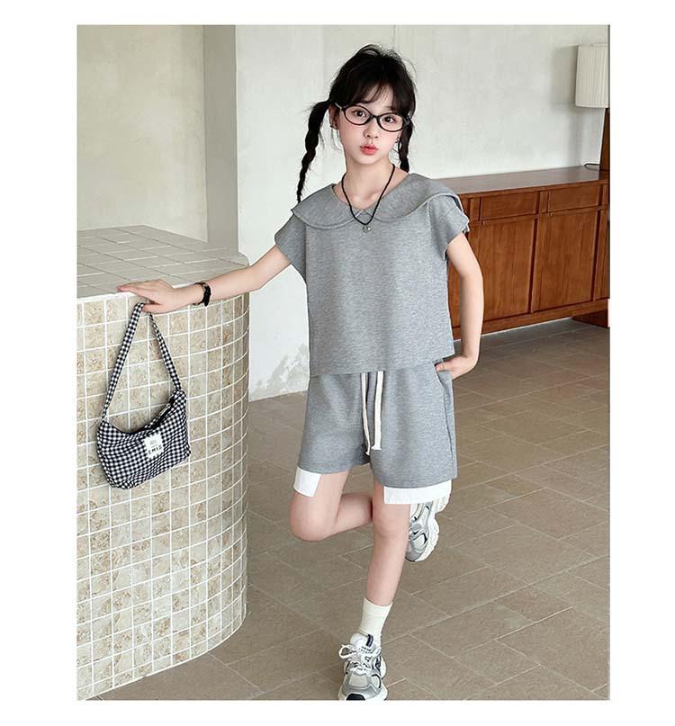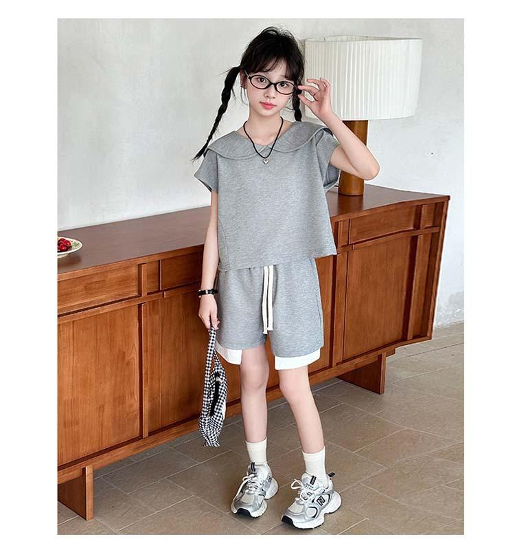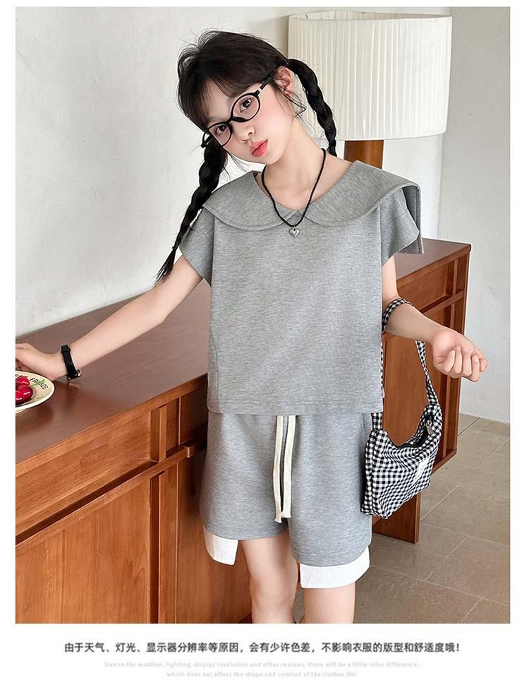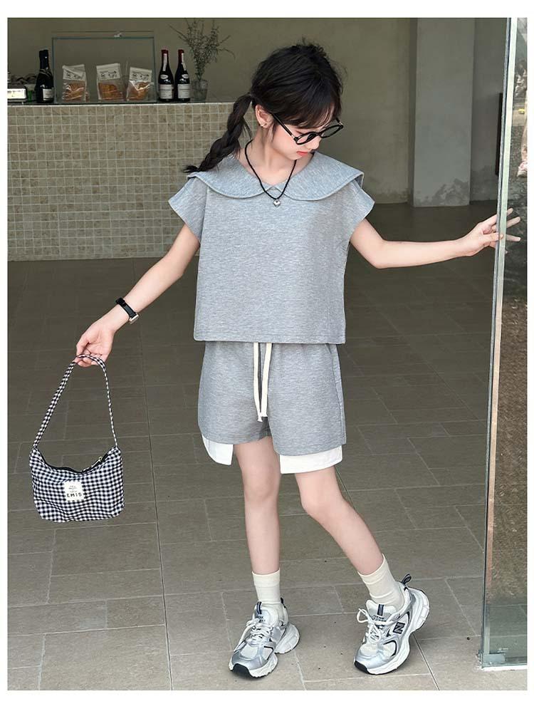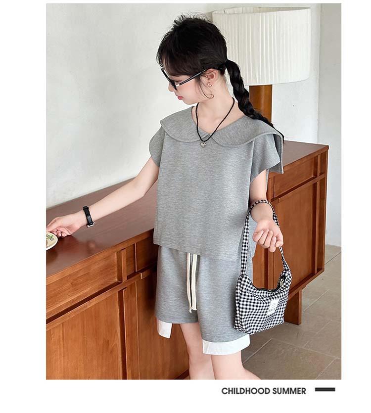 Conjunto de Verano para Niñas 2025 Nuevo Elegante Camiseta de Muñeca para Niños Manga Corta Shorts Conjunto de Dos Piezas para Niños Mayores a la Moda