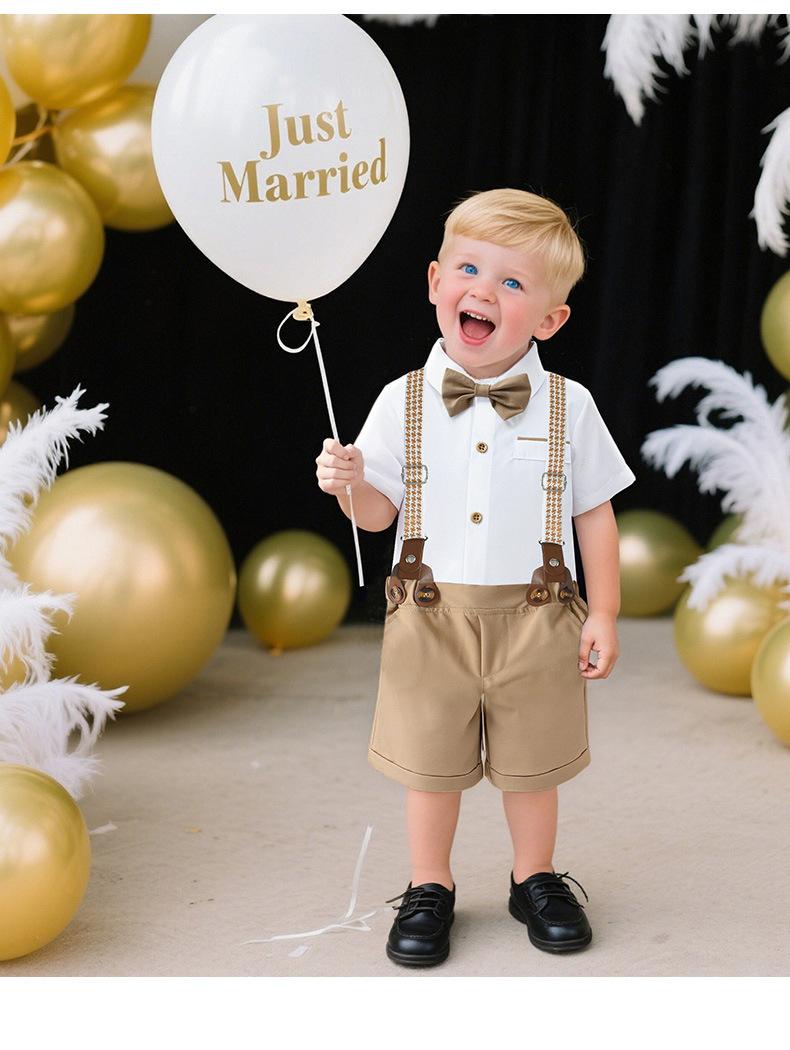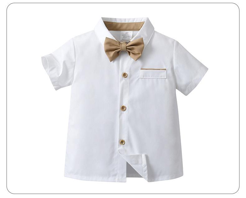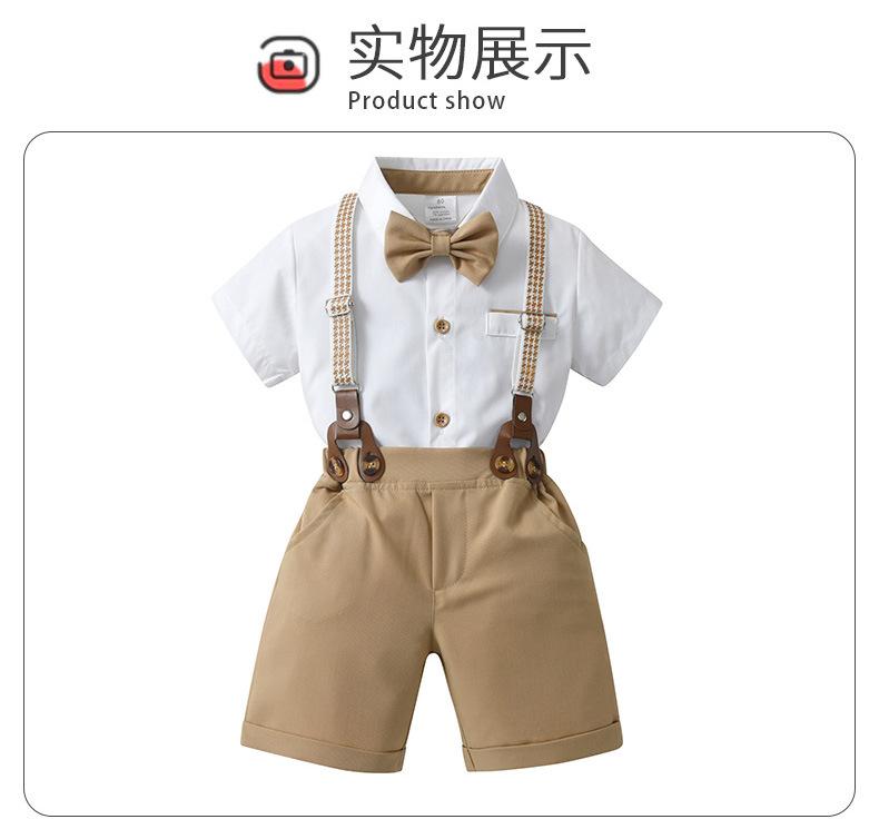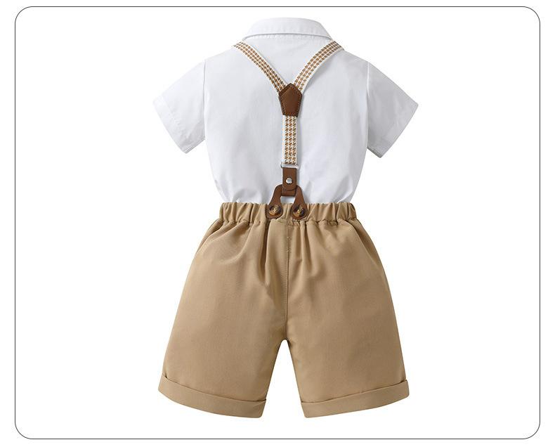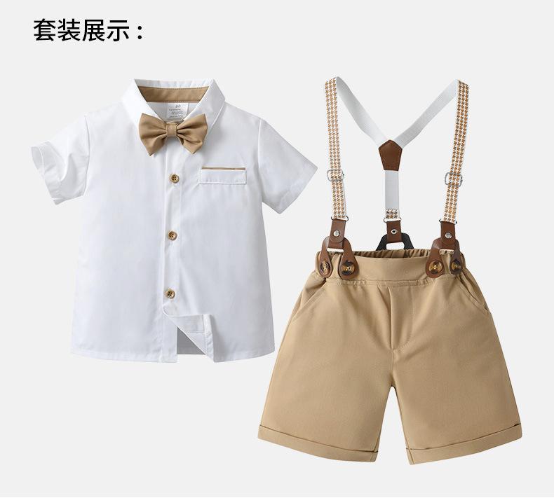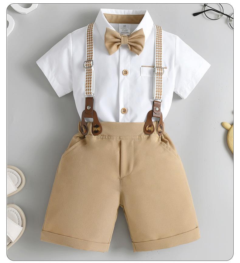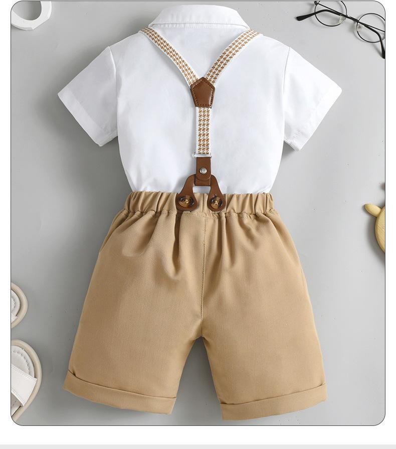 Talla 80-Talla 90-Talla 100-Talla 110-Talla 120-Talla 130 Ropa Infantil Nueva de Comercio Exterior Overol Conjunto de Dos Piezas Ropa de Verano para Niños Ropa de Bebé Verano Caballero Británico Conjunto para Niños