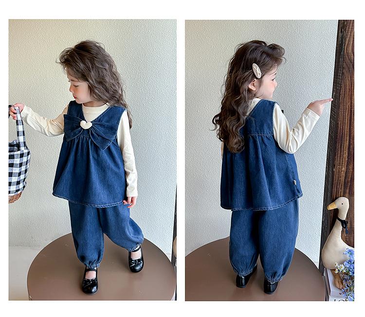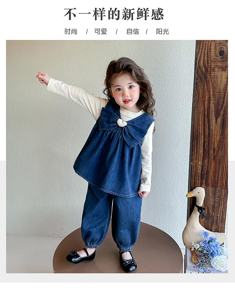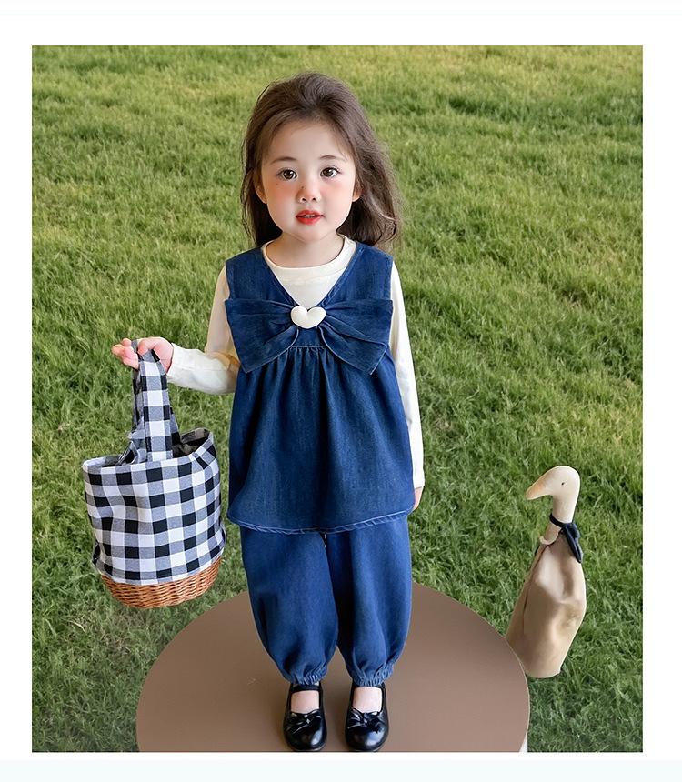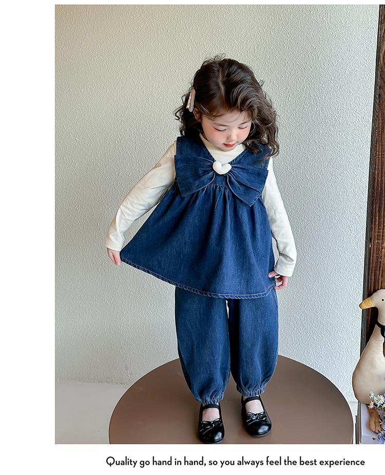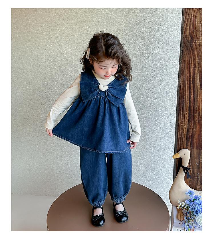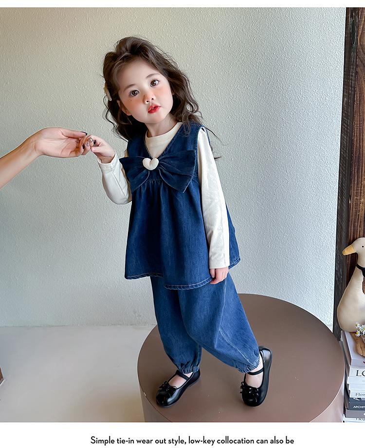 Conjunto de Primavera para Niñas 2025 Nuevo Moda Infantil Lazo Corazón Bebé Estilo Primavera y Otoño Mezclilla Conjunto de Tres Piezas Tendencia
