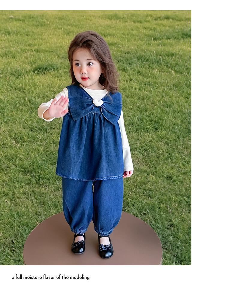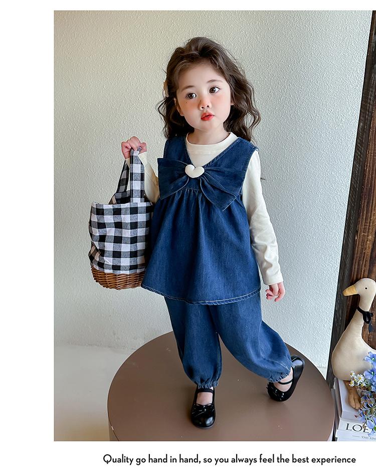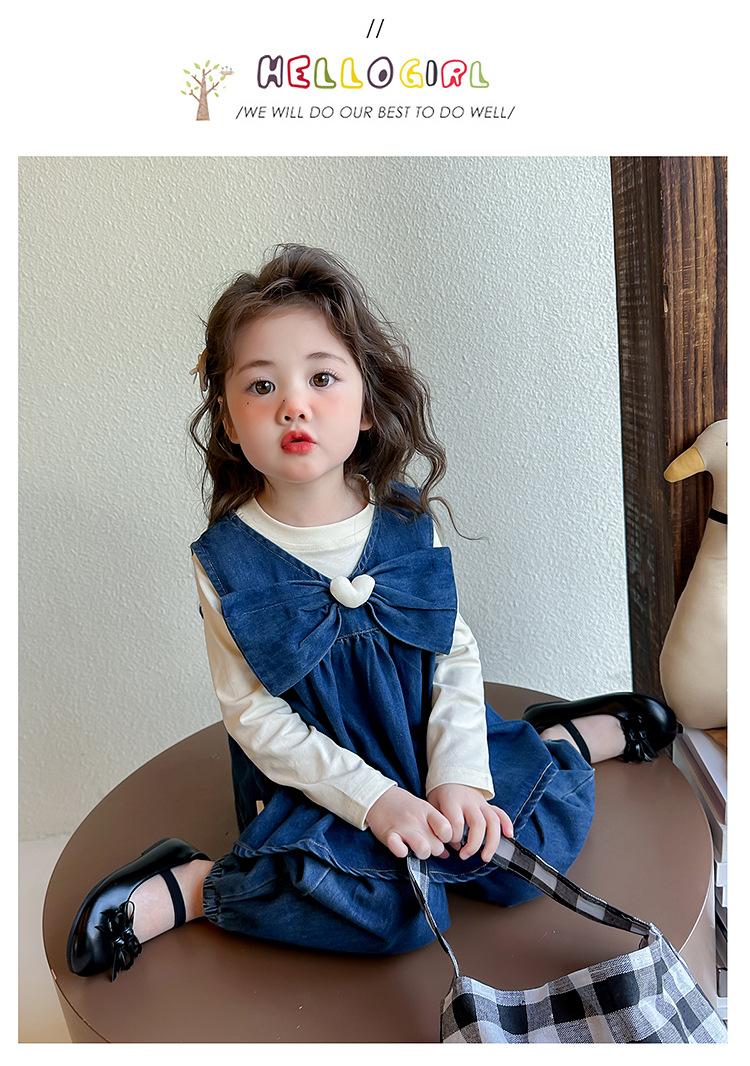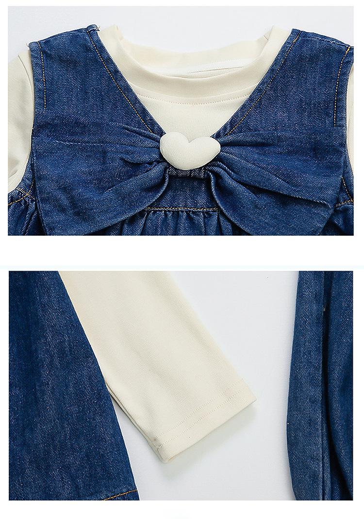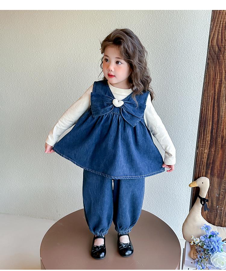 Conjunto de Primavera para Niñas 2025 Nuevo Moda Infantil Lazo Corazón Bebé Estilo Primavera y Otoño Mezclilla Conjunto de Tres Piezas Tendencia