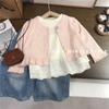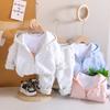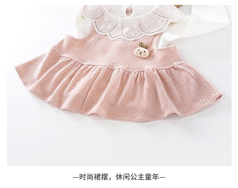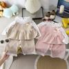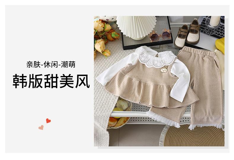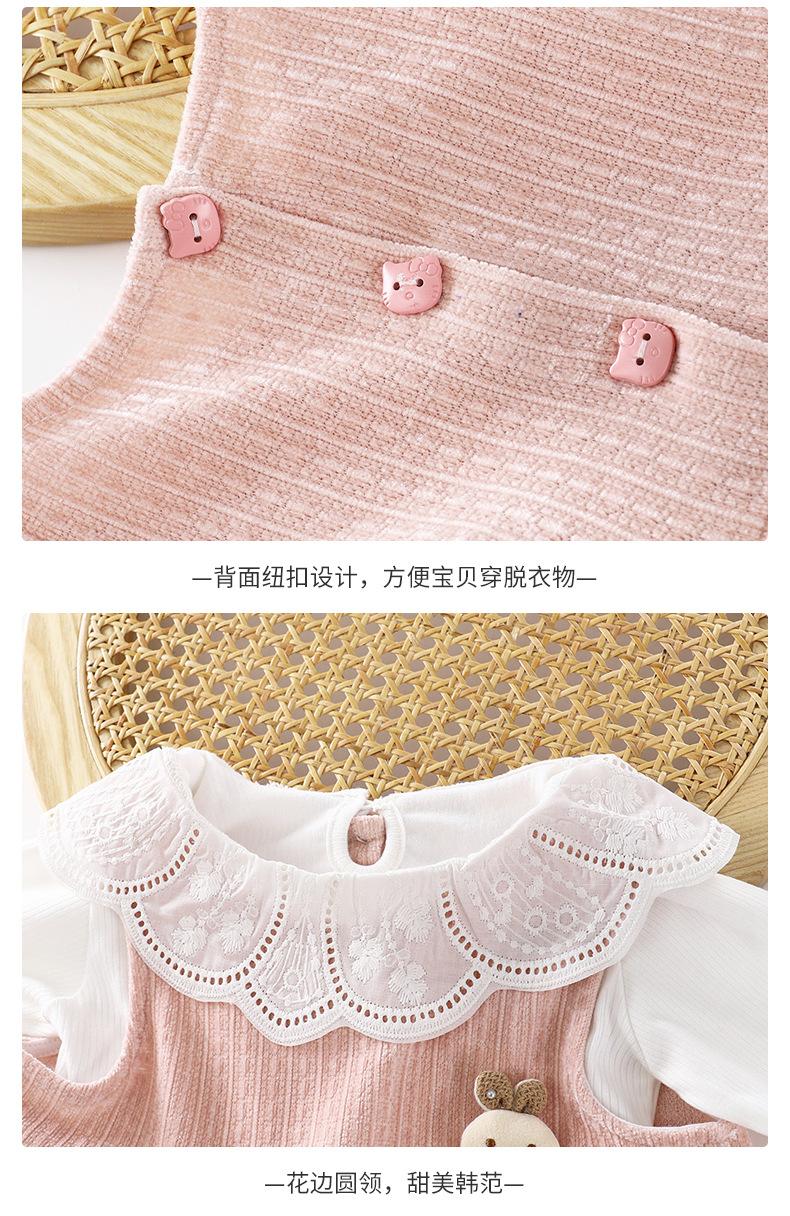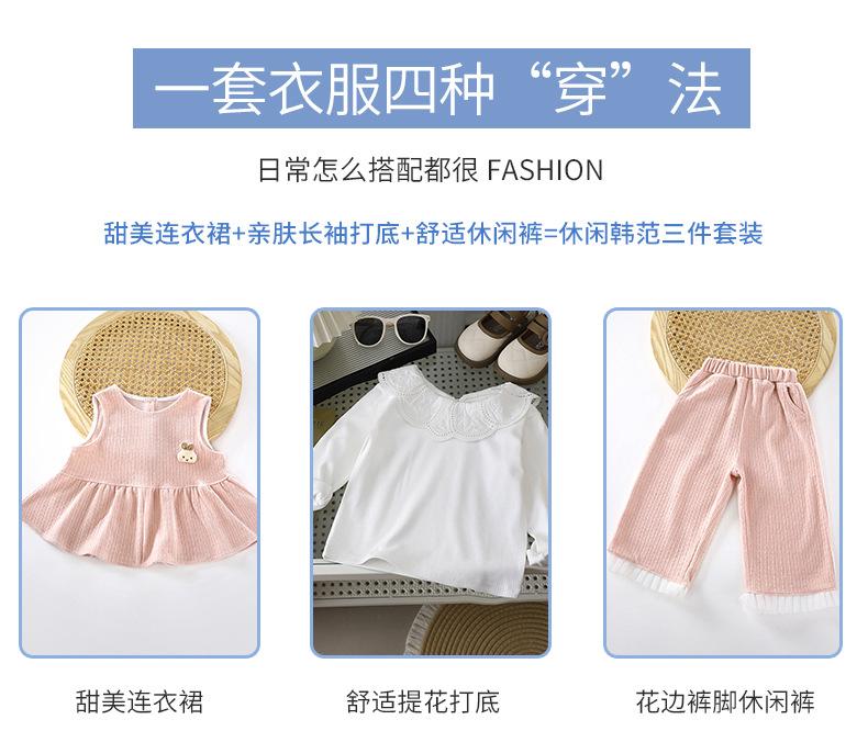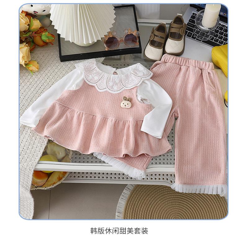 Nuevo Conjunto de Chenilla para Niños Otoño Niñas Dulce Cuello de Encaje Conjunto de Tres Piezas Bebé Borde de Encaje Dibujos Animados Ropa de Otoño