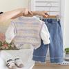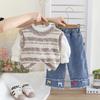Conjunto de Otoño para Niñas 2025 Nuevo Bebé Primavera y Otoño Casual Chaleco Suéter Conjunto de Tres Piezas Moda Infantil y para Niños Pequeños