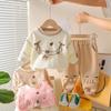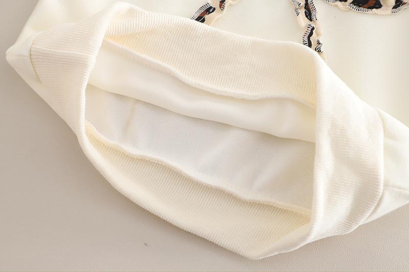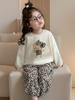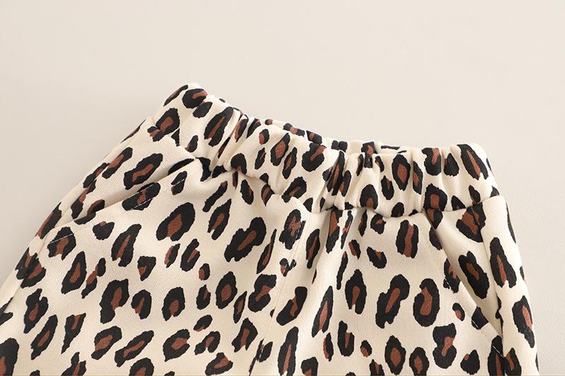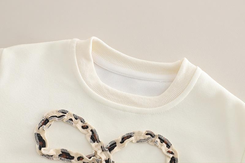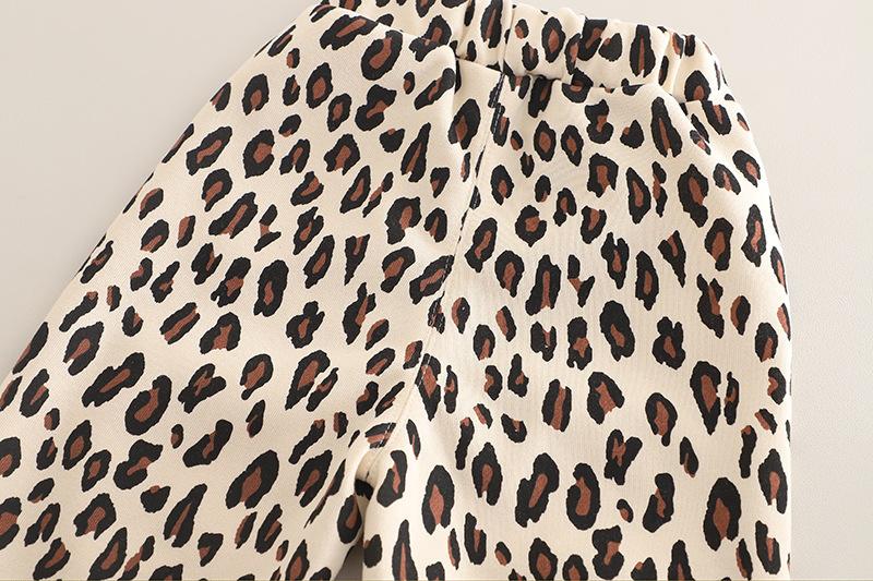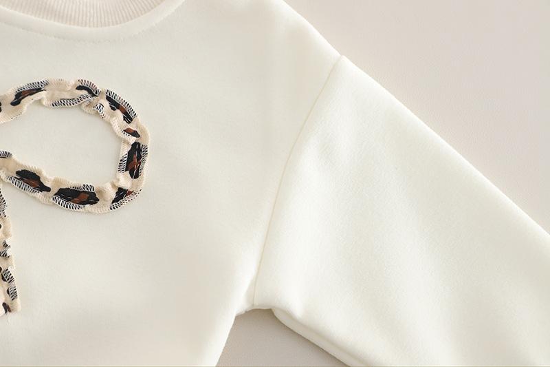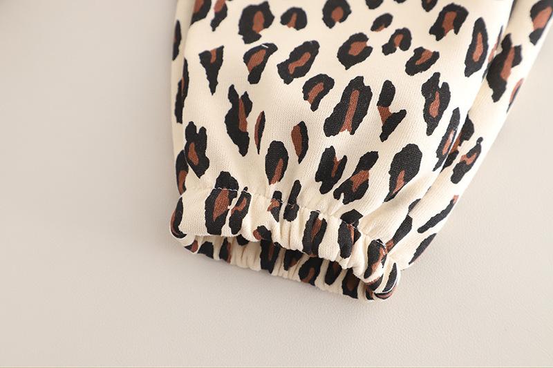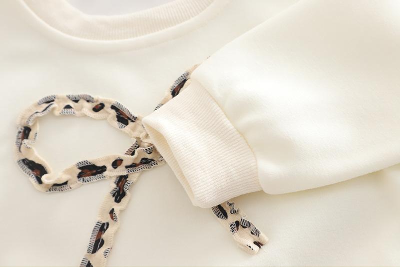 Conjunto de dos piezas para niñas a la moda 2025 Nuevo Bebé Trendy Otoño Estilo Coreano Estampado de Leopardo Lazo Sudadera Ropa Casual de Otoño