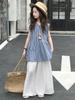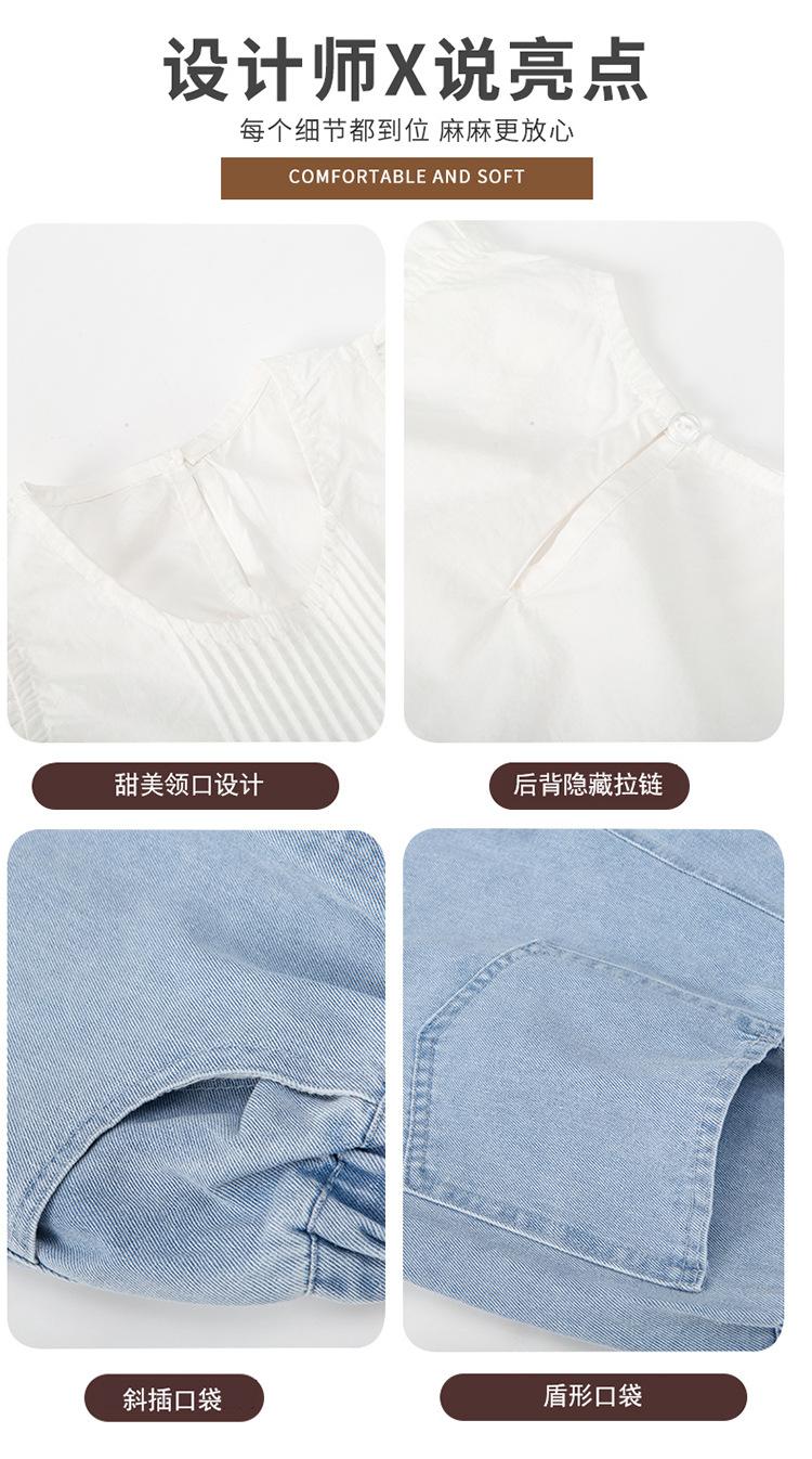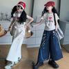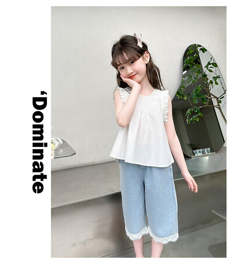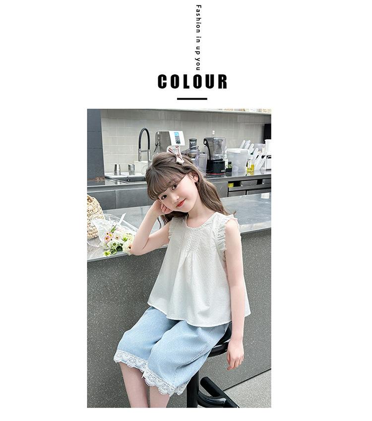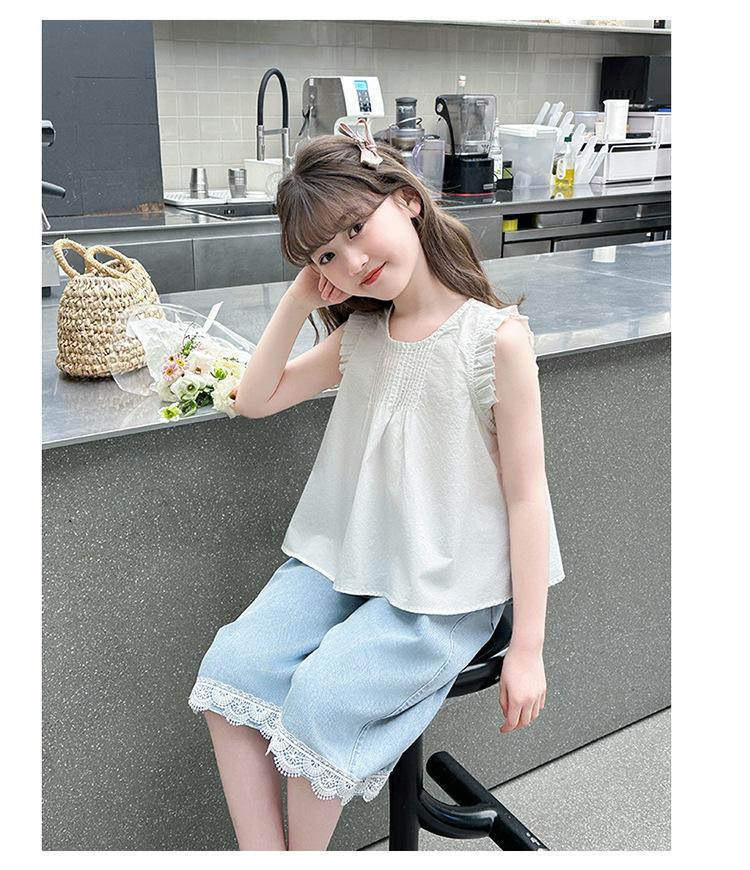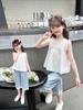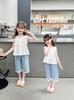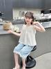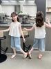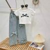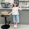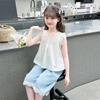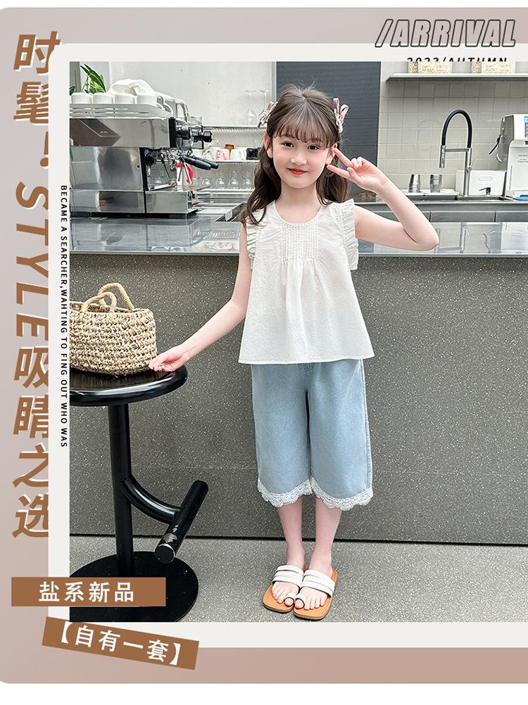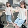 Traje de Verano para Niñas Delgado 2025 Nuevo Traje de Verano Jeans para Niños Medianos y Grandes Niña Manga Vuelo Culottes Conjunto de Dos Piezas