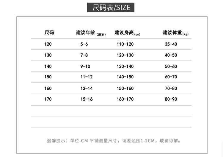 120cm, 130cm, 140cm, 150cm, 160cm, 170cm